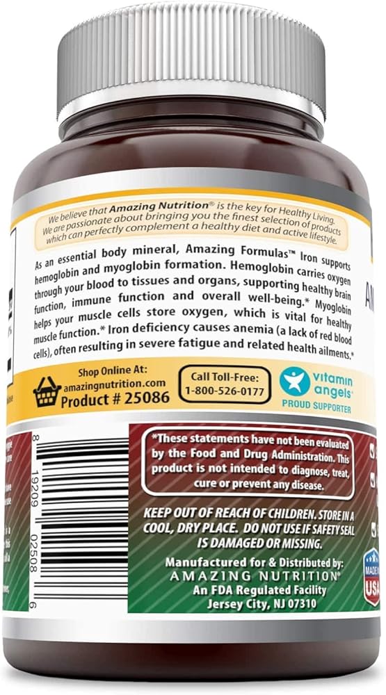 OPTIMUM DOSAGE Each Veggie Capsule of Amazing Formulas Iron (as Iron Bisglycinate) dietary supplement provides an optimum dosage of 25 milligrams of Iron.