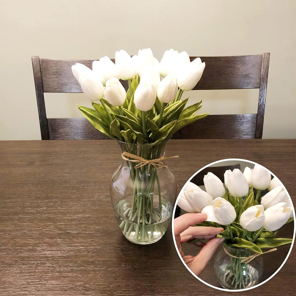 Package:10 pcs white Real Touch Tulips and 10pcs pink PU Fake Tulips Flowers