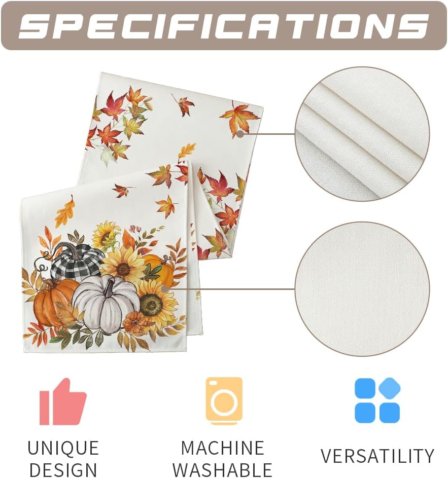 - {Perfect Fall Decoration}: Add a touch of autumn charm to your dining table with this 13 x 72-inch Fall table runner, ideal for tables seating 4-8.