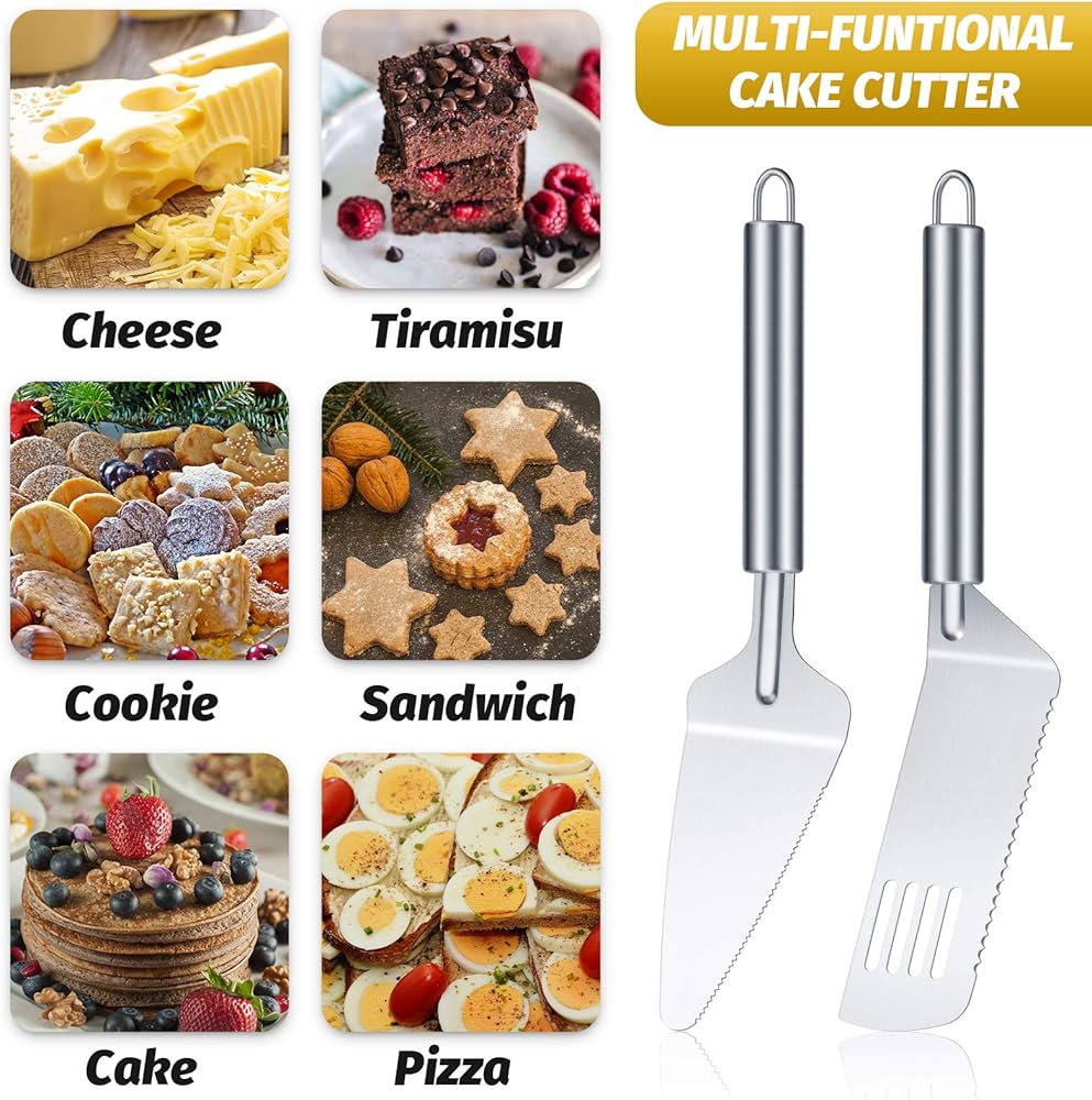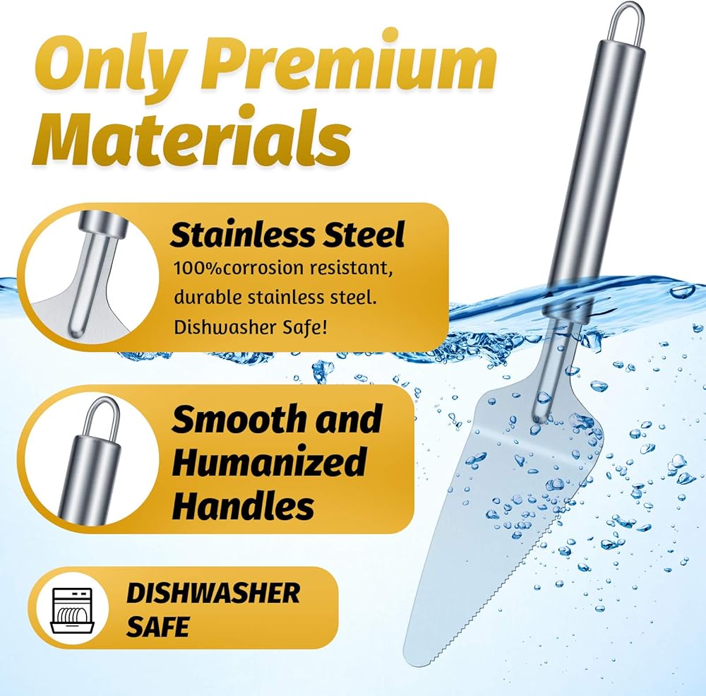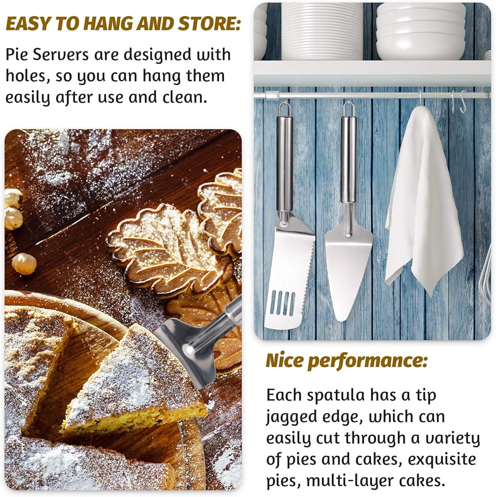 4 Pieces pie server set stainless steel pie spatula serrated cake cutter with comfortable handle, easy to grip for cutting and serving desserts brownies pizza and cake