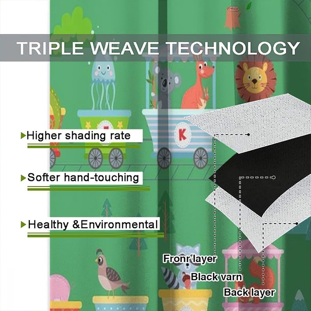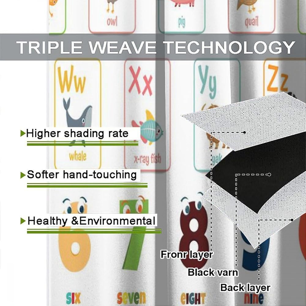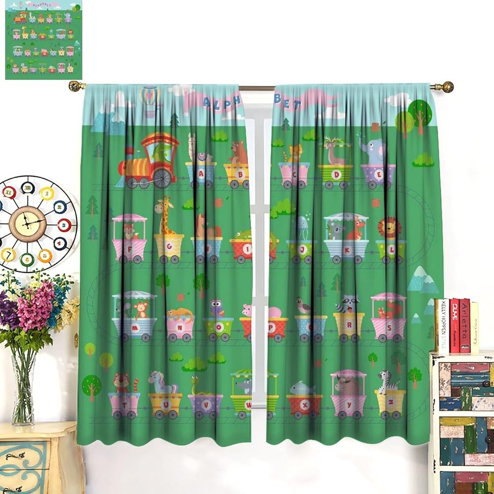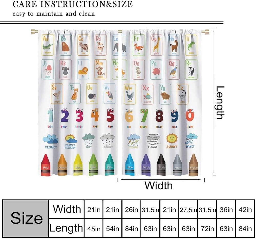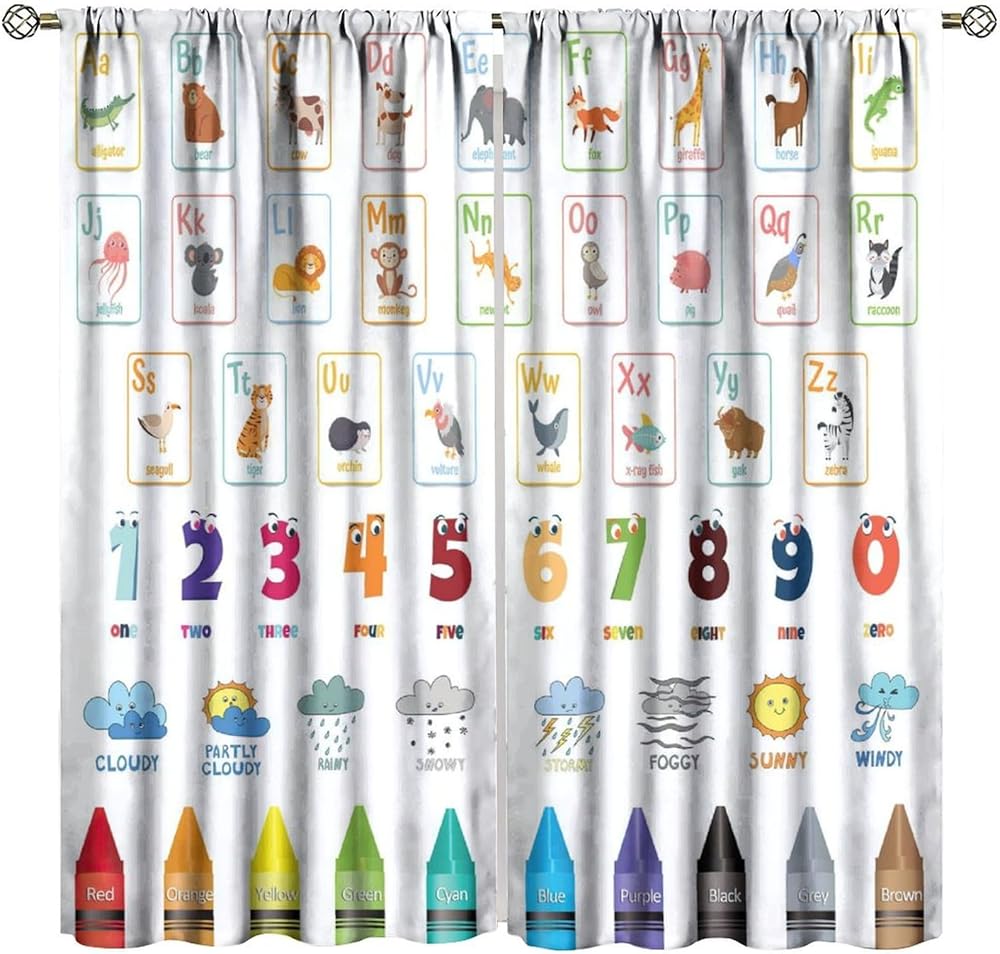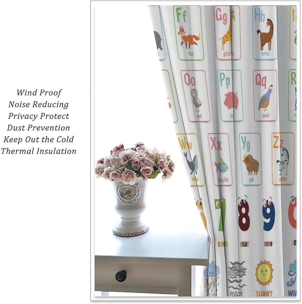 Cartoon Kids ABC Curtains, Cute English Animal Alphabet Fruits Berries Leaves Window Drapes, for Children Boys Girls Living Room Bedroom 41" W X 45" L (No Blackout)