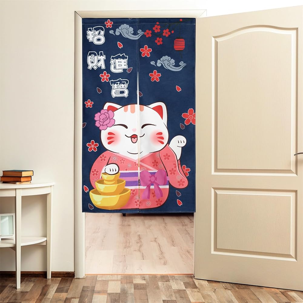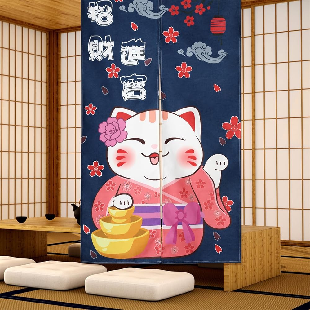 🎏 [EASY TO HANG] Just put the tension rod (not included in the package) through the rod pocket at the top. Can also be hung with push pin or thread. Maneki Neko is believed to bring good luck, fortune, happiness