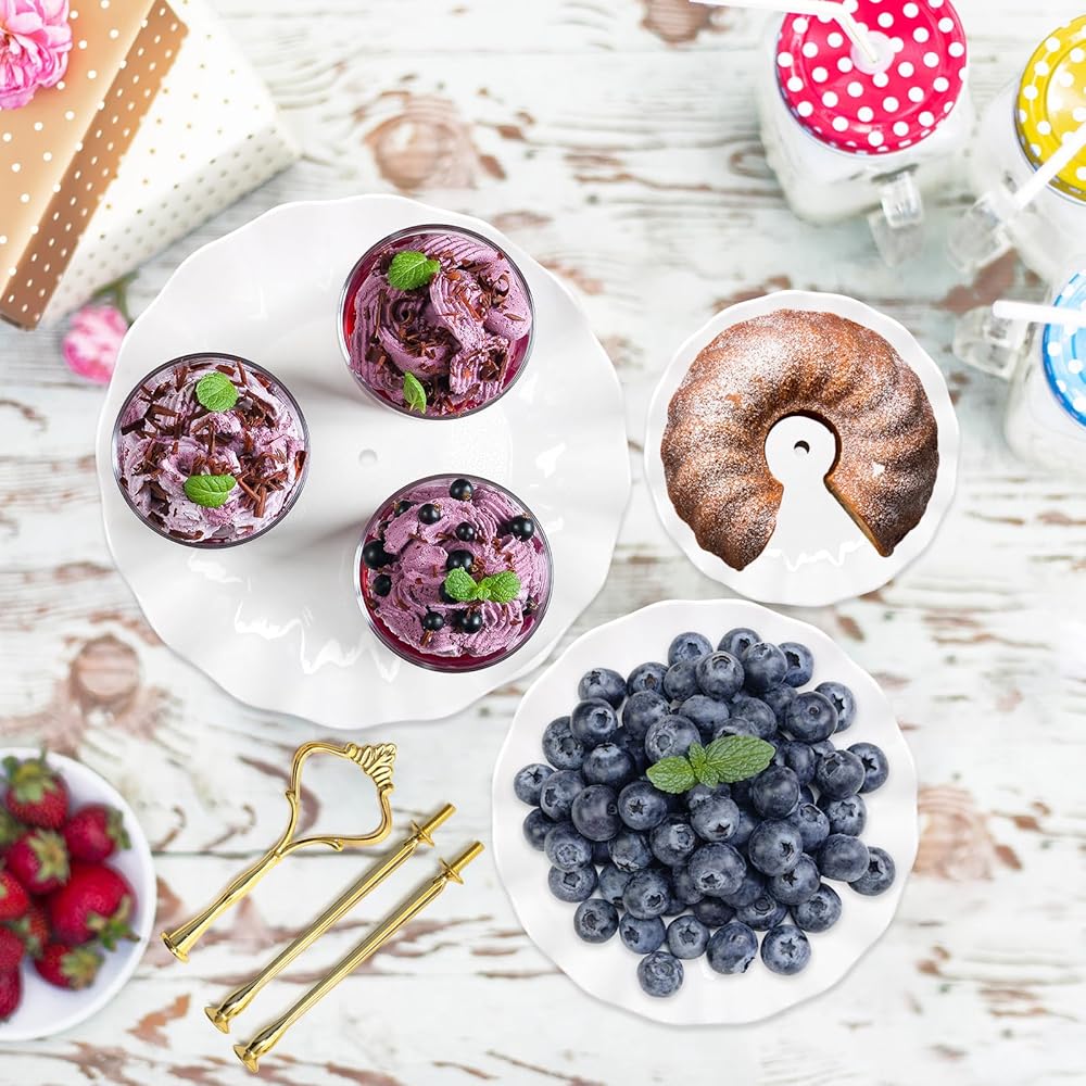 Easy to Assemble: The whole cupcake stand has strength and stability by connecting the tiers with solid pillars and screws. Easy to assemble and requires no tools.