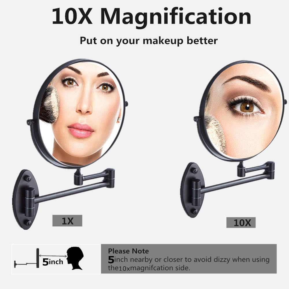 Double-sided with 1xand 10x magnifying, Ideal for applying make-up and other beauty treatments that require more precision extra precision. NOTE: The 10x magnification should be used within 5" of the mirror which can limit use
