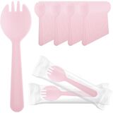 【Individually Packaged】Each spork is individually wrapped in plastic, making it cleaner and more convenient to use. Package includes 100pcs pink plastic sporks, measuring 4.5"x1.3" inches, great for large gatherings and events.