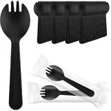 EUSOAR Plastic Forks and Spoons, 100pcs 4.5"x1.3" Disposable Sporks, Heavy Duty Heavyweight Plastic Cutlery Individually Wrapped for Party Bulk Picnic Wedding Birthday Holiday Family Gathering-Black