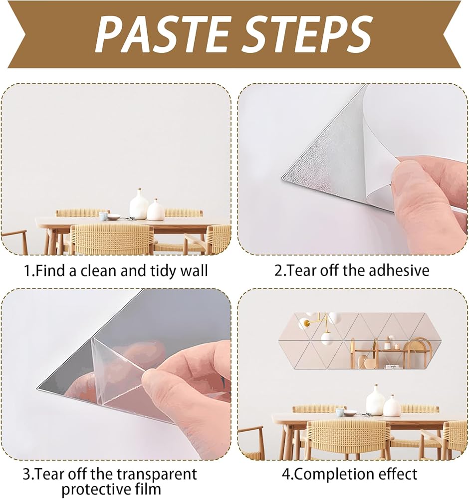 Compared with fragile and bulky glass mirrors, our acrylic mirror stickers are lighter, less fragile, safer, more environmentally friendly and last longer. Best of all just stick the mirror tiles on any smooth surface and use them without taking up space.