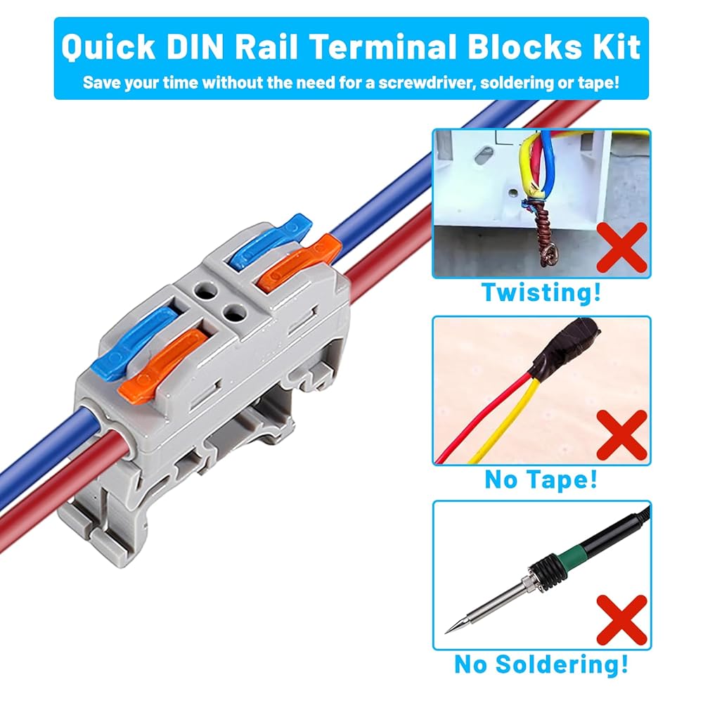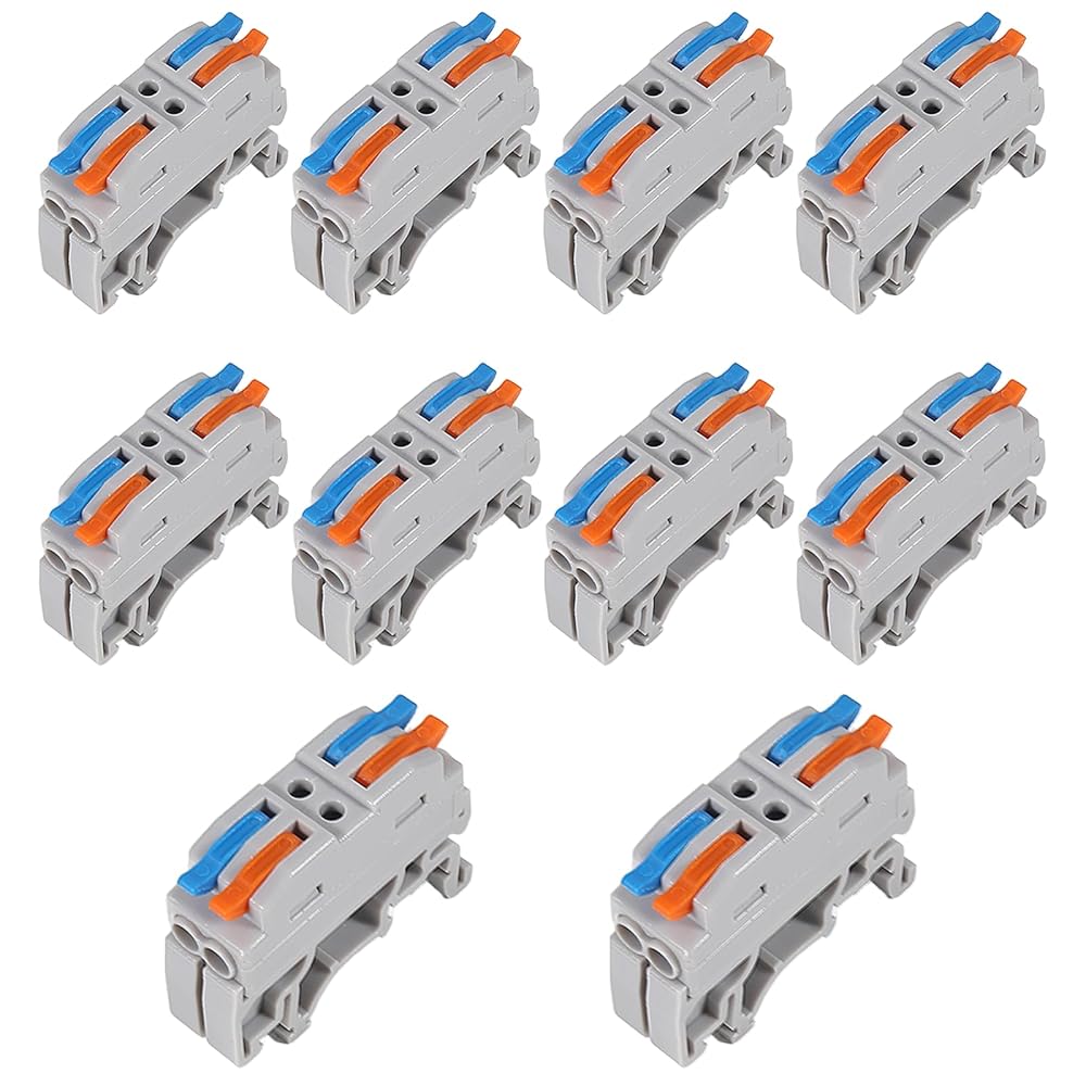 10PCS DIN Rail Terminal Blocks Kit, 2 in 2 Out Universal Compact Lever Wire Connector for Electrical Wires, Detachable Ground Circuit Terminal Blocks for Circuit Inline 28-12 AWG