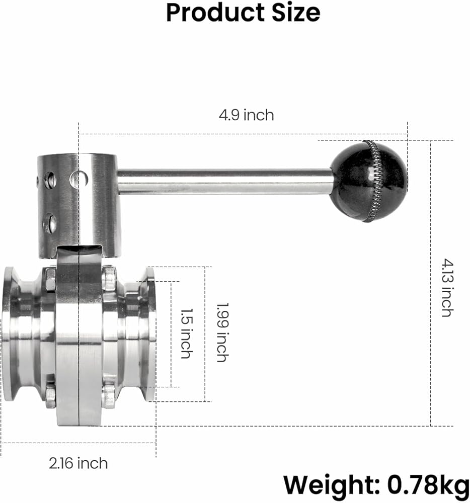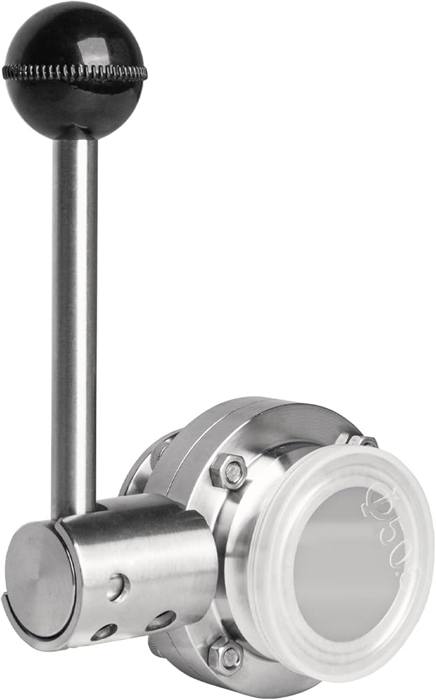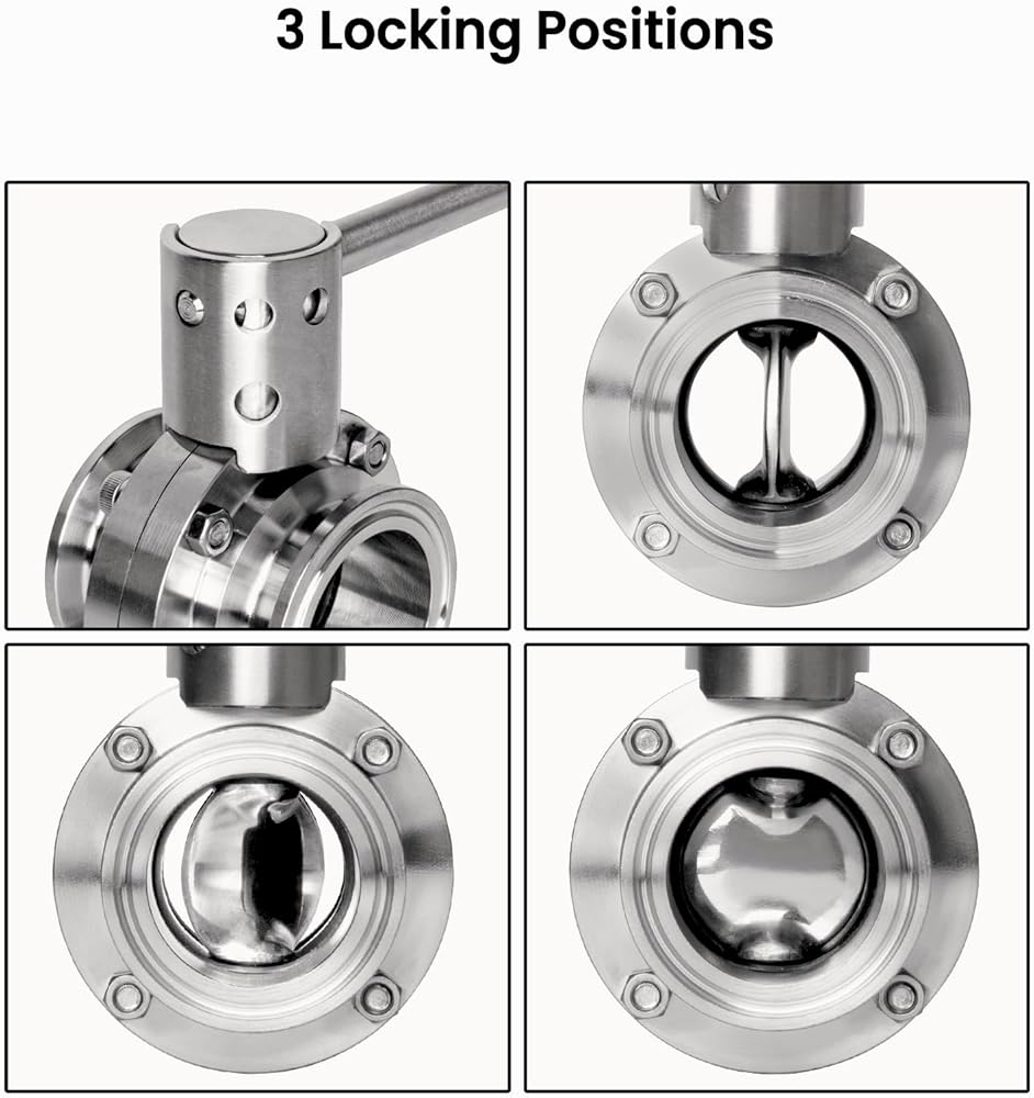 User-Friendly Design - The tri clamp butterfly valve is equipped with a three position handle, easy to operate, just pull and rotate to adjust the valve to three different settings. The end of the handle is a rotatable and detachable ball, providing a comfortable grip