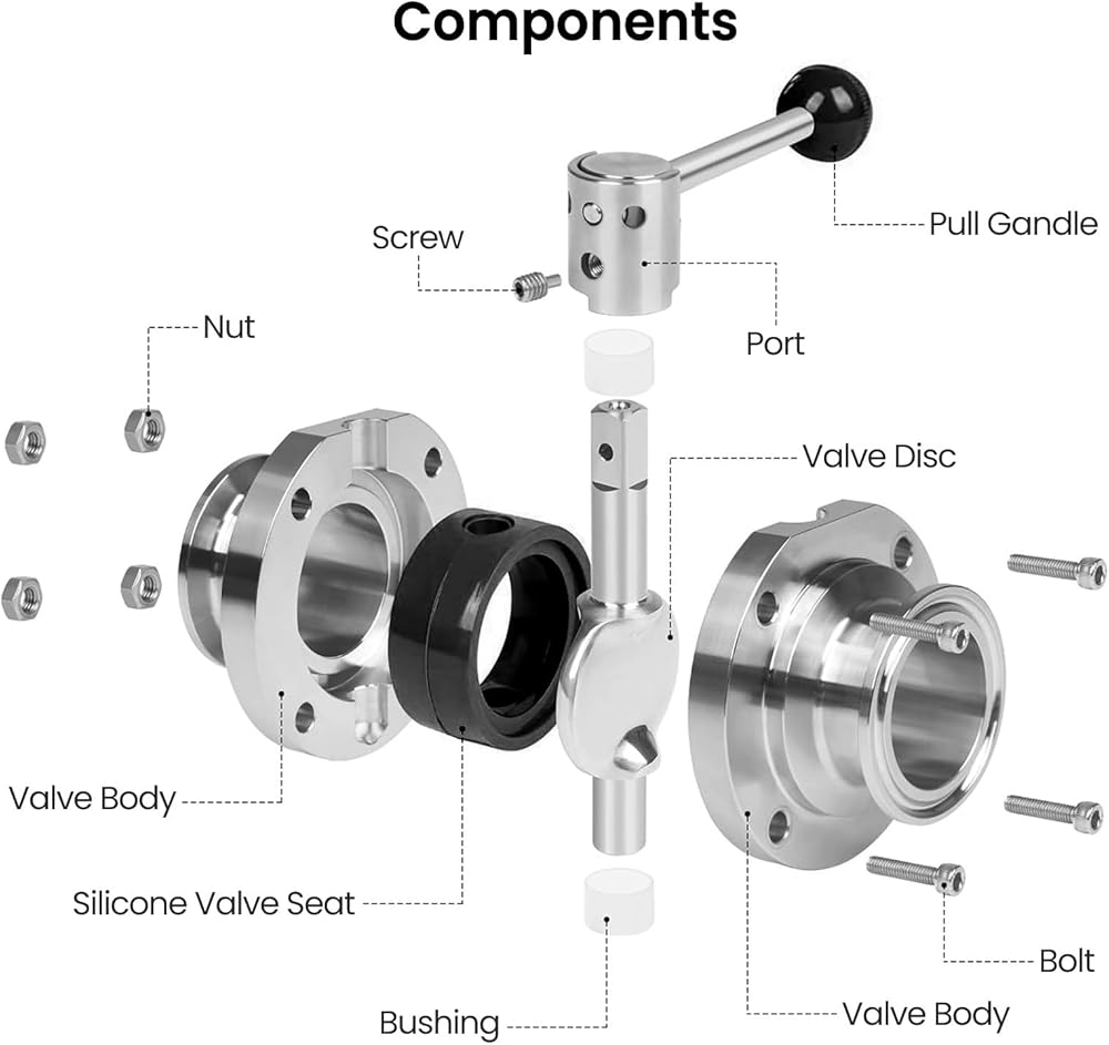 Robust Construction - The sanitary butterfly valve is made of 304 stainless steel material, ensuring resistance to rust and corrosion. It features high toughness and hardness, making it resistant to deformation