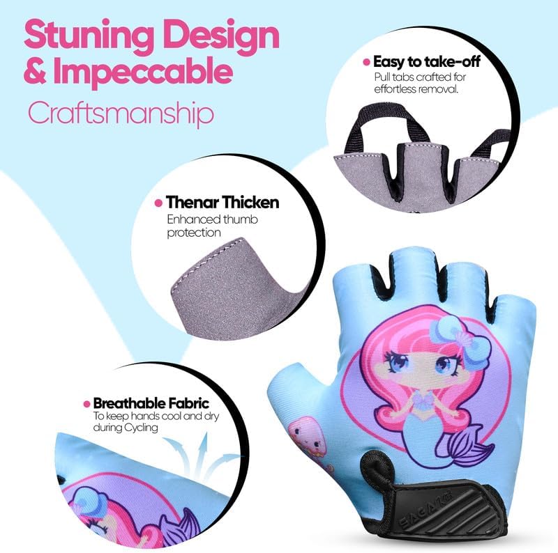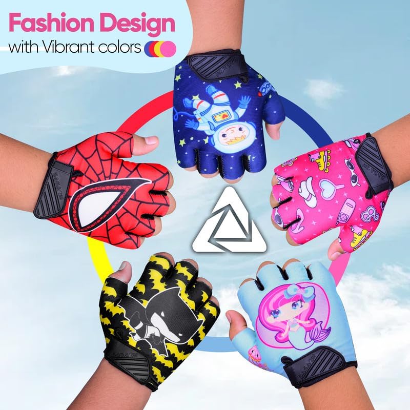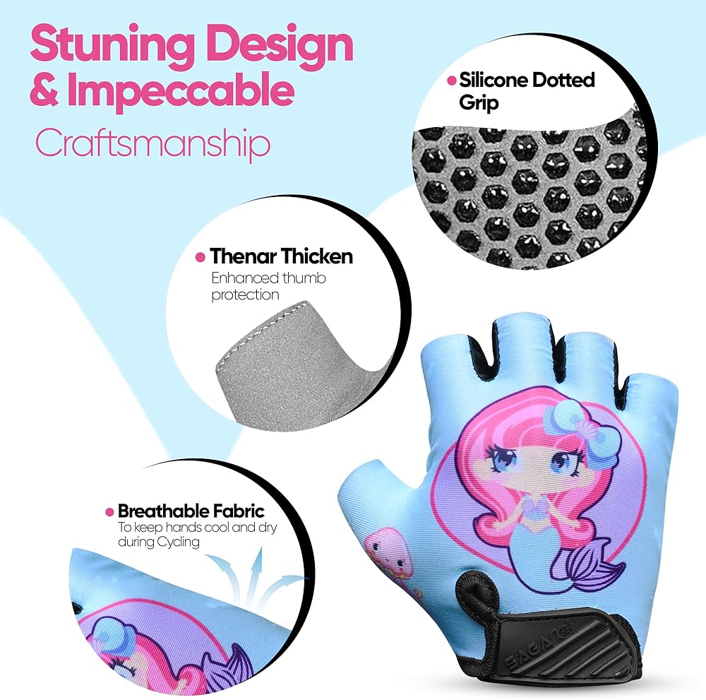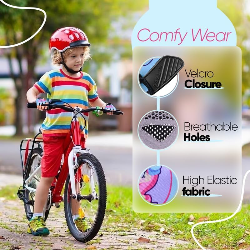 𝐕𝐢𝐛𝐫𝐚𝐧𝐭 𝐚𝐧𝐝 𝐒𝐭𝐲𝐥𝐢𝐬𝐡: Available in a range of fun and vibrant designs, these cycling gloves fingerless are not only functional but also fashionable. Kids will love wearing them, making every activity more enjoyable and stylish.