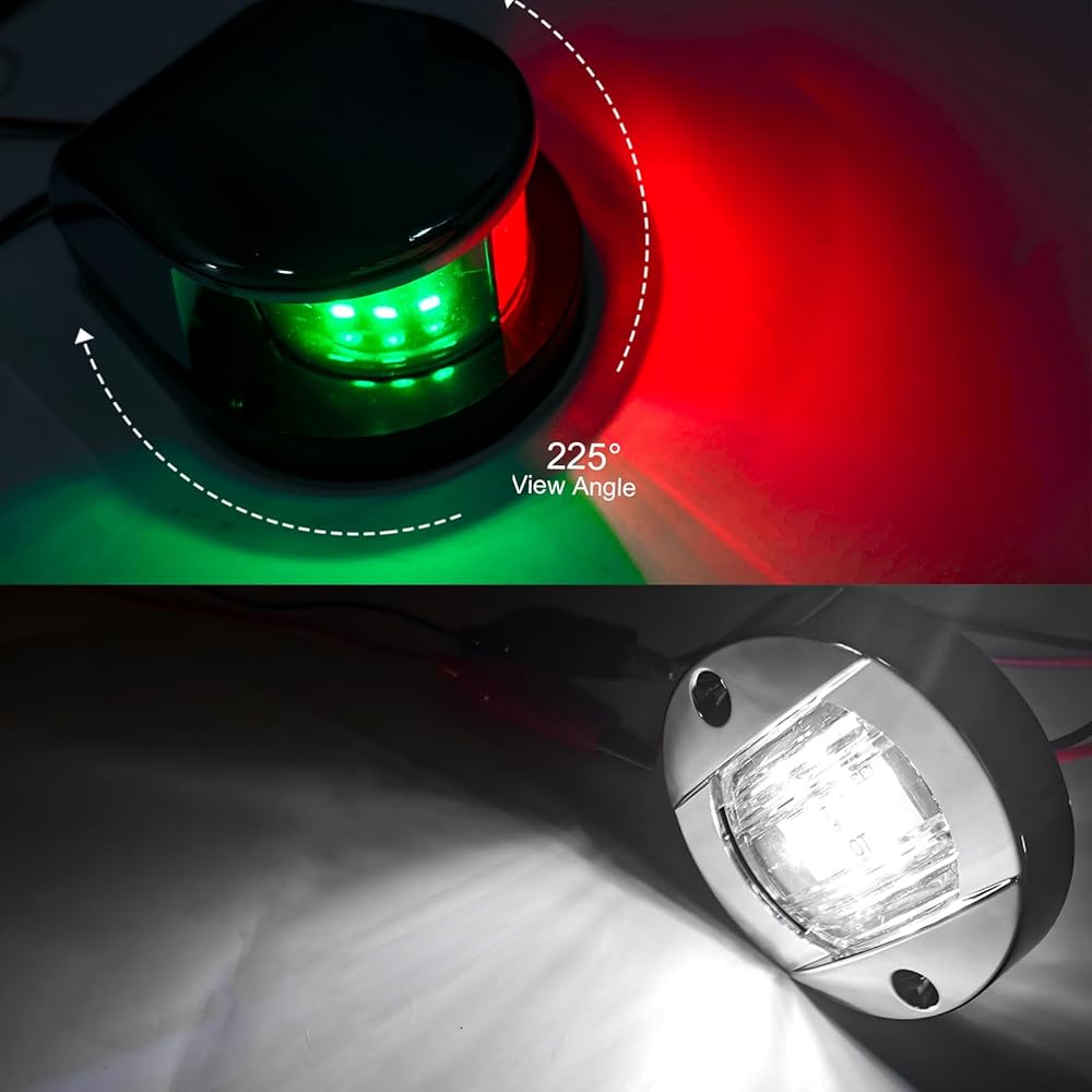 Easy to Install:Red Green boat navigation lights and white boat lights both are surface mounted and screw fixed. Light kit comes with free screws