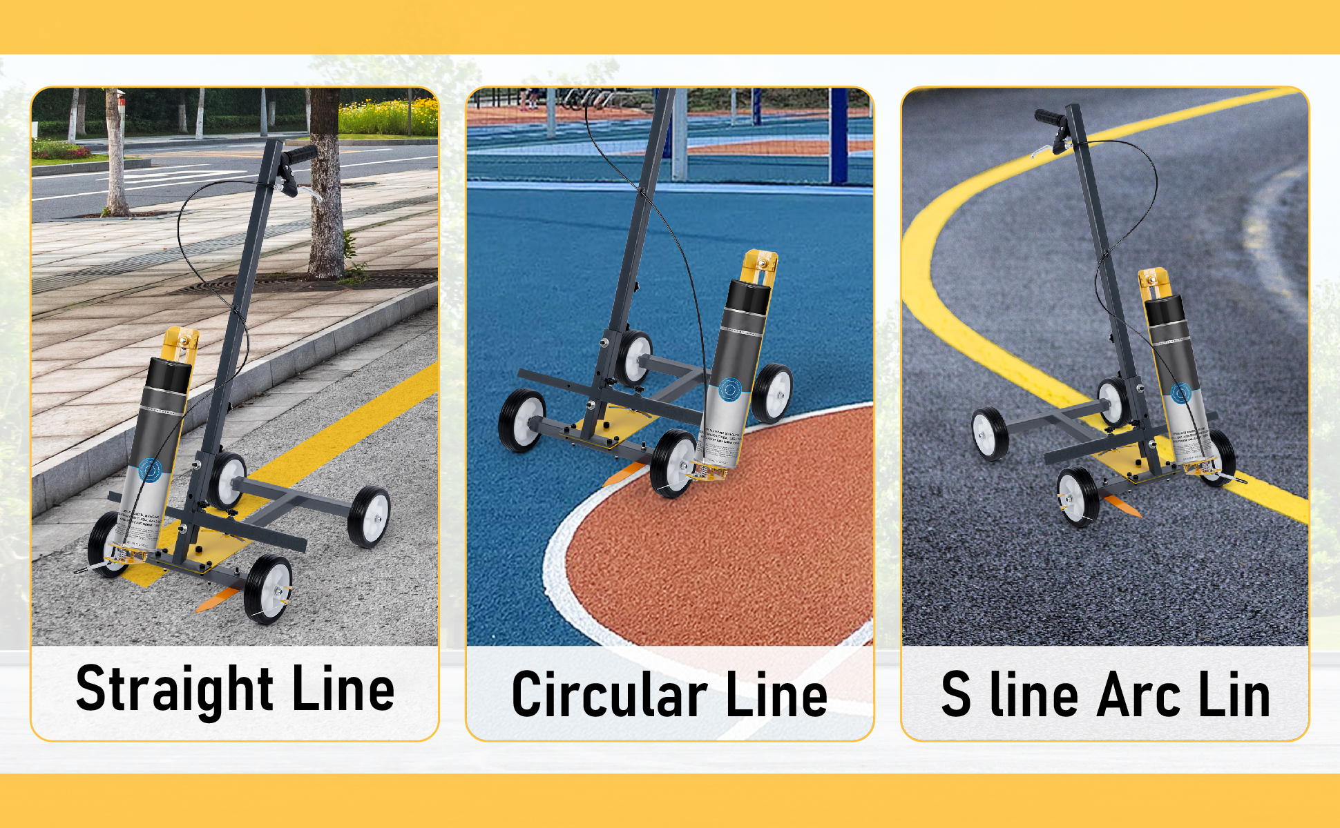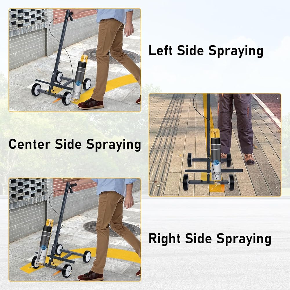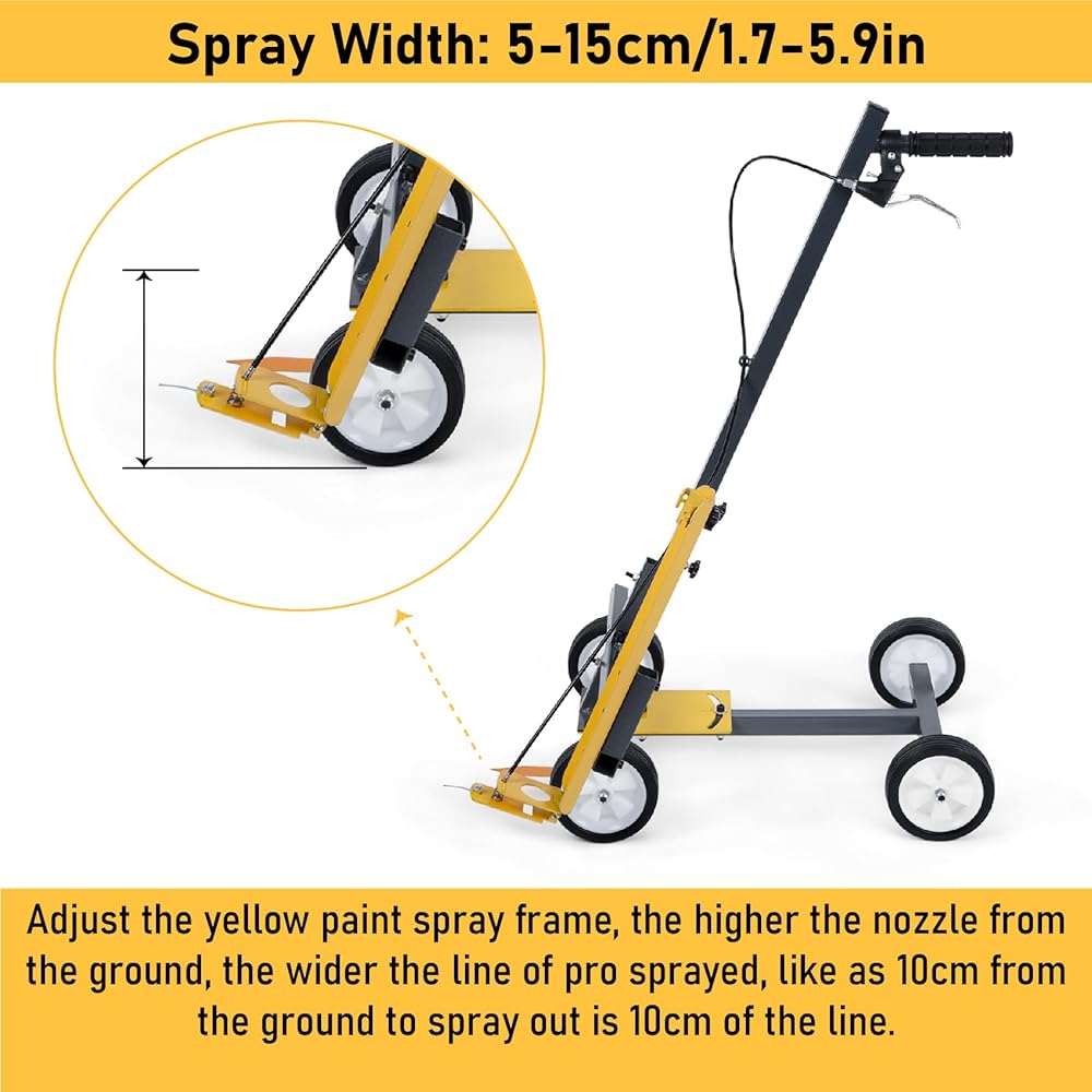 Width Adjustable: Spray Width 1.7-5.9 in. Adjust the yellow paint spray frame, the higher the nozzle from the ground, the wider the line of pro sprayed, like as 10 cm from the ground to spray out is 10 cm of the line