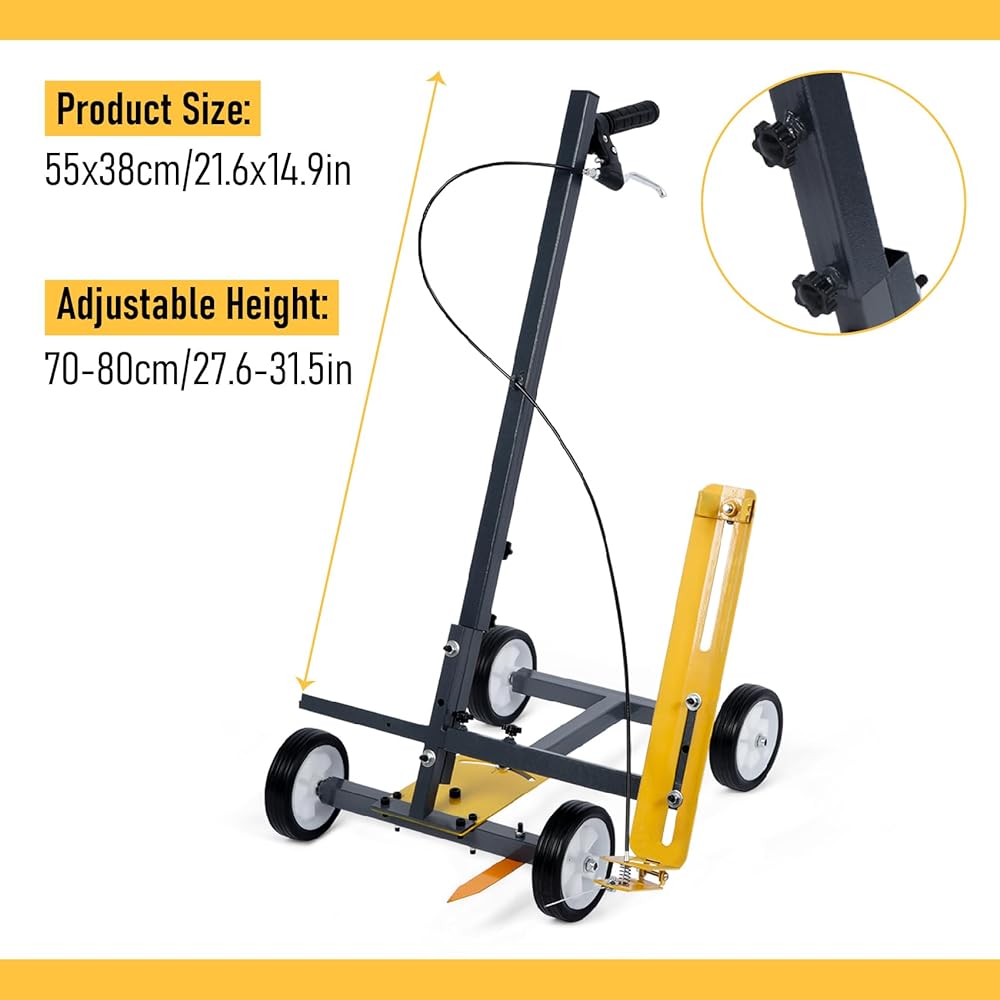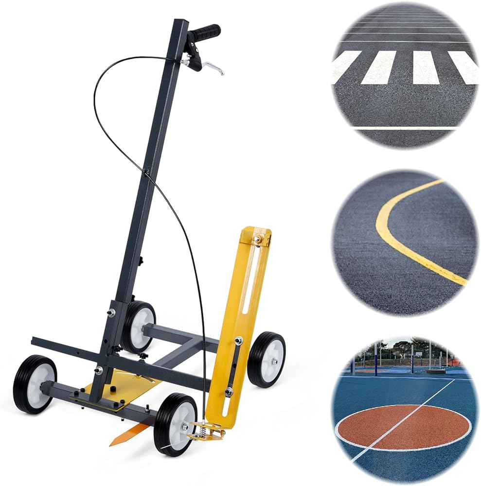 Height Adjustable: Overall dimensions of the parking lot paint line striping machine is 21.6 x 14.9 in, adjustable height of the handle 27.6-31.5 in, Easy to use, line painting machine can draw straight lines, circles, curves, arc