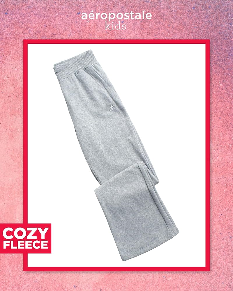 ALL-DAY COMFORT: Elevate her activewear collection with AEROPOSTALE Girls' Sweatpants, featuring fleece wide-leg jogger pants designed for girls, ensuring all-day comfort and style. These lightweight joggers offer a perfect blend of functionality and fashion, making them ideal for various activities from casual outings to sports practice sessions.
