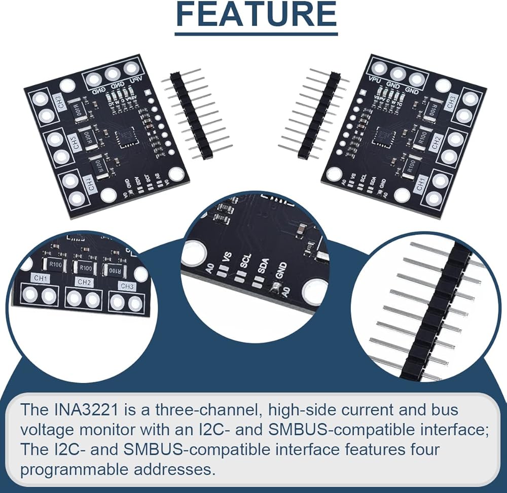 Interface: The INA3221 is a three-channel, high-side current and bus voltage monitor with an I2C- and SMBUS-compatible interface; The I2C- and SMBUS-compatible interface features four programmable addresses.