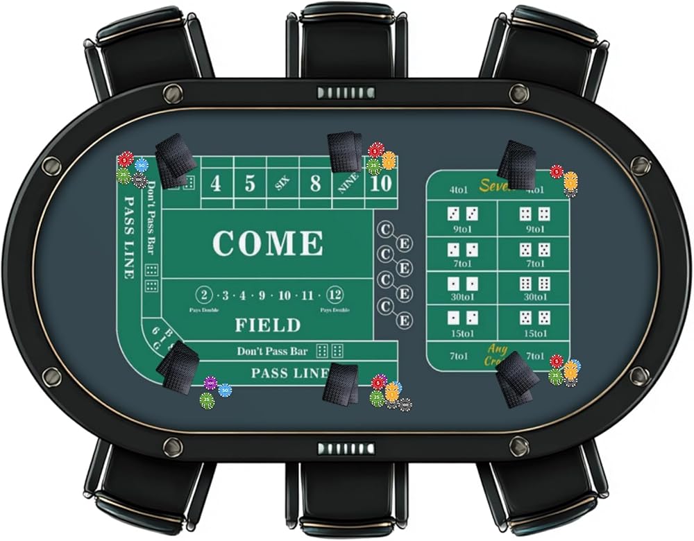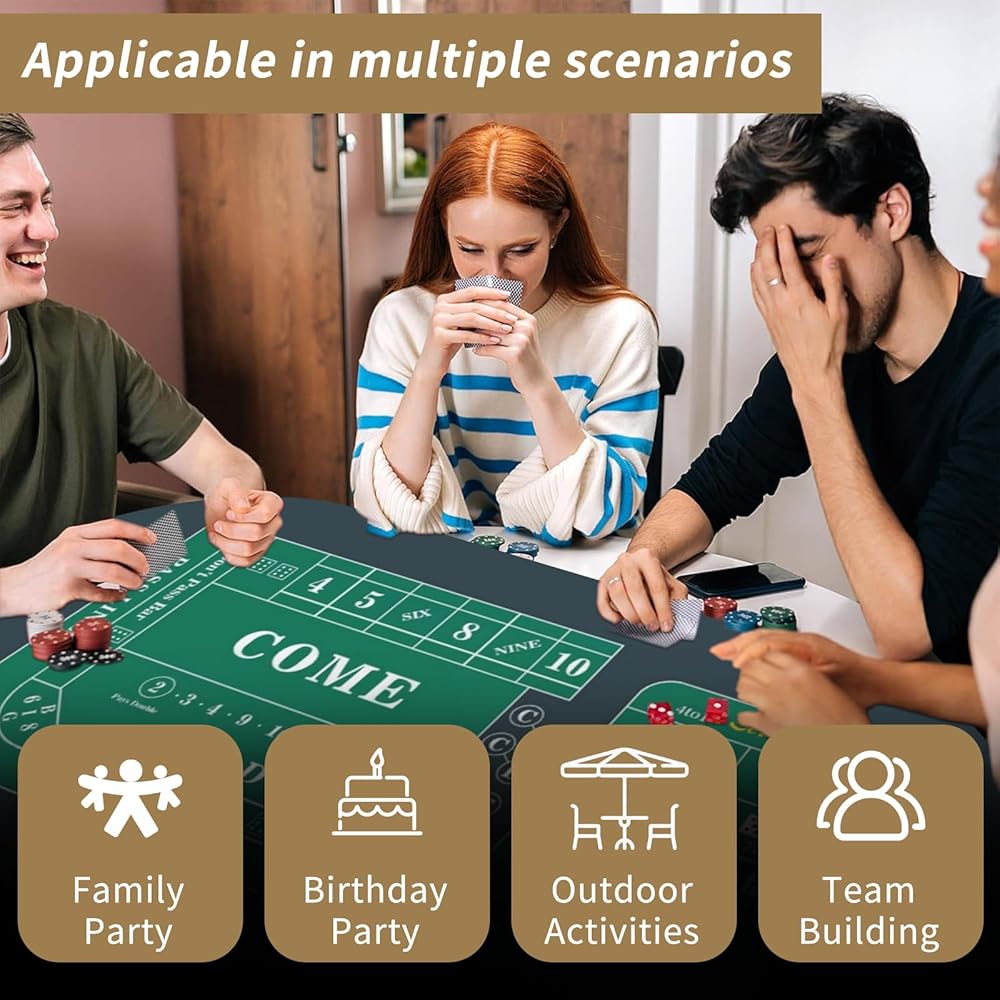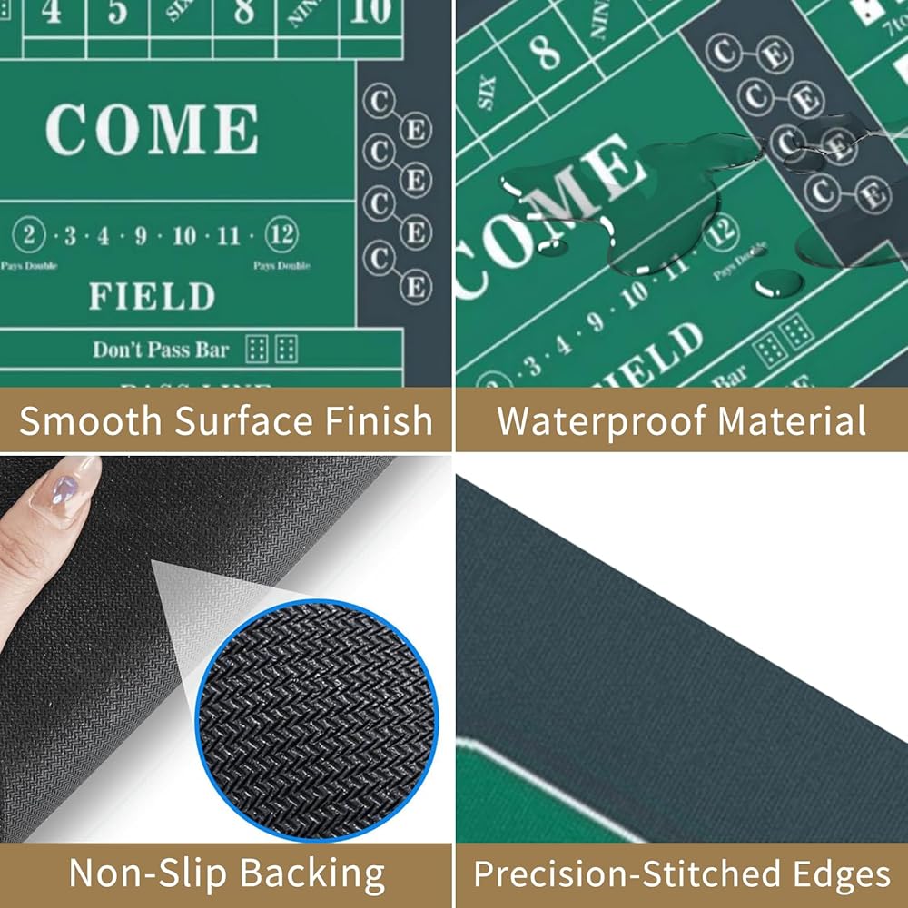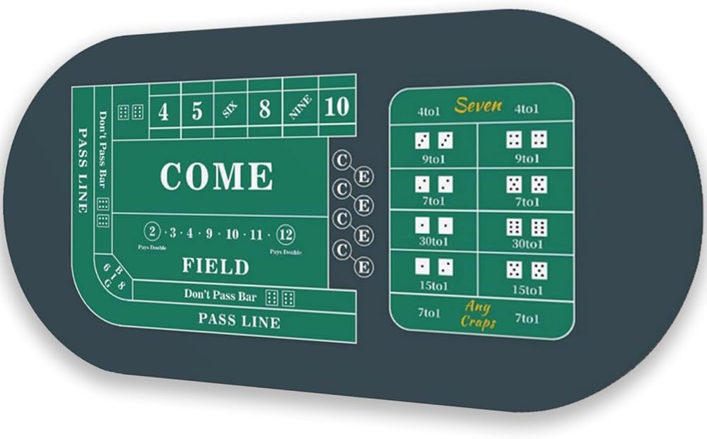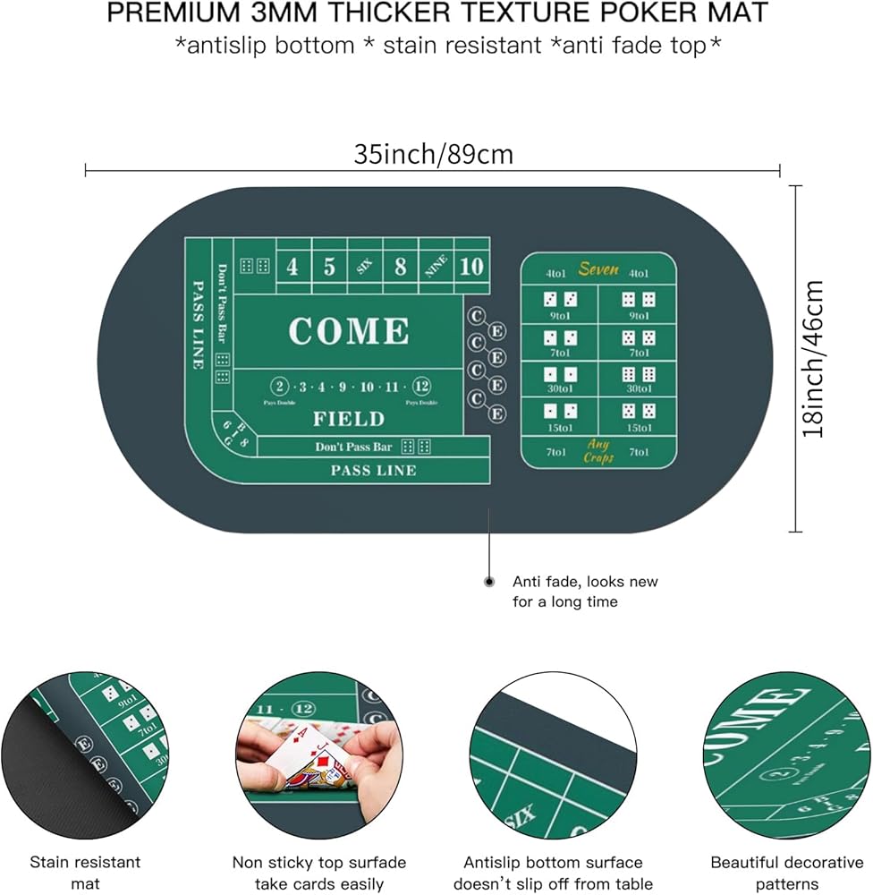 AQQA Craps Mat 35" x 18" Craps Table Mat Smooth, Durable Edge-Stitched 3mm Rubber, Non-Slip, Water-Resistant Craps Table Top Mat for Casino Games, Home Entertainment, Party