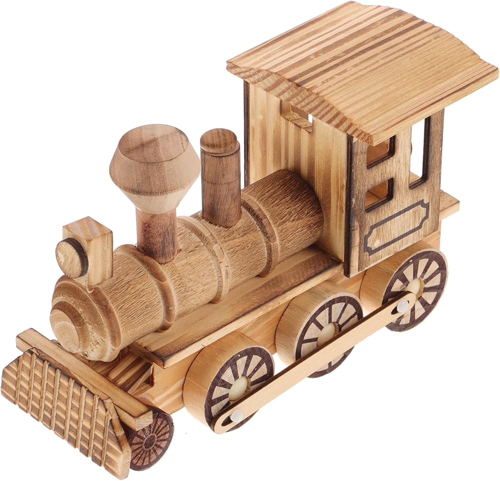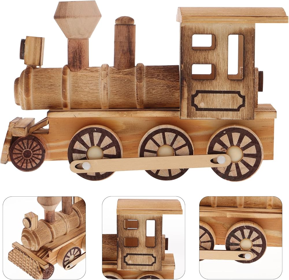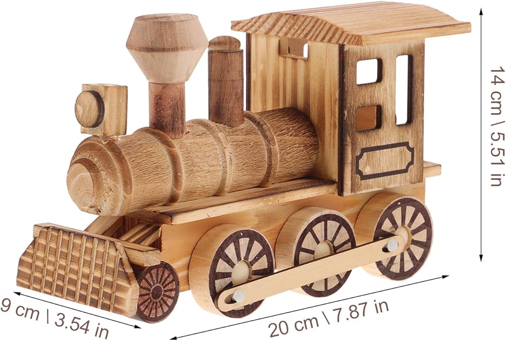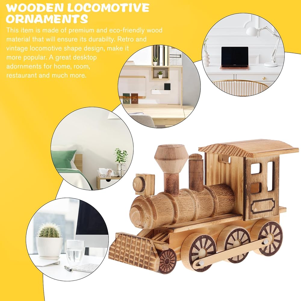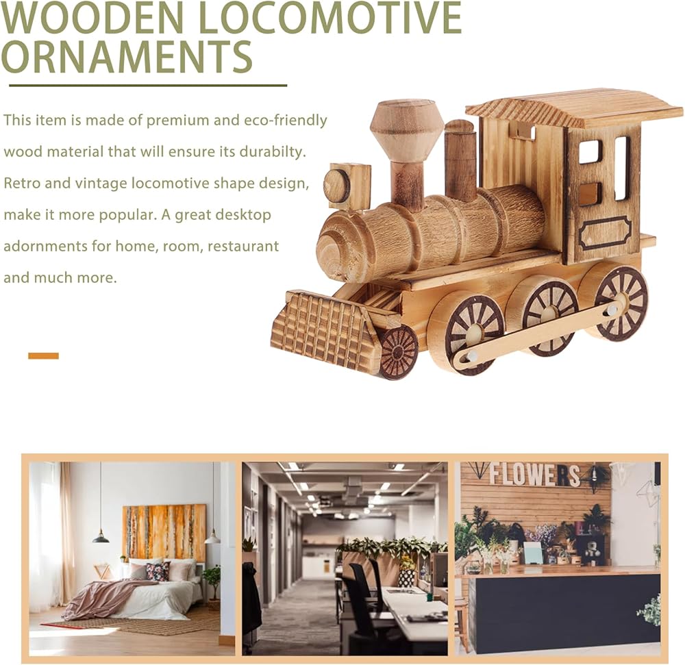 Vintage Train Figurine Retro and vintage locomotive shape design, make it more popular. toys A great desktop adornments for home, room, restaurant and much more.Desktop This item is made of premium and wood material that will ensure its durabilty