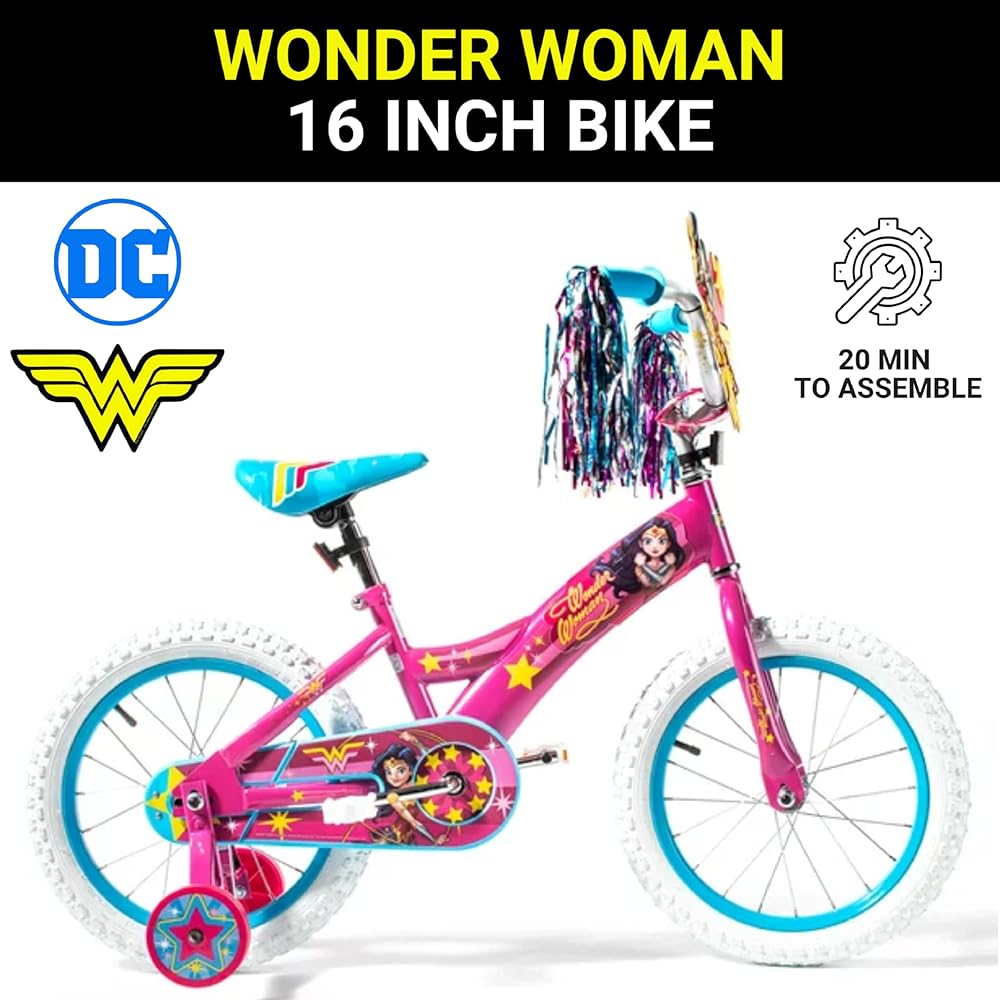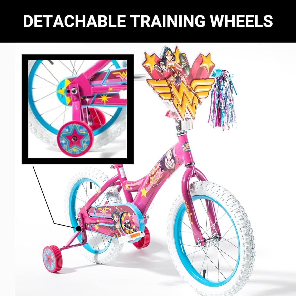 Wonder Woman 16 Inch Bike for Kids | Detachable Training Wheels for Safety & Balance | Pedal Powered Bicycle for Young Superheros Ages 4 and up| Perfect for Boys & Girls | Adjustable Seat