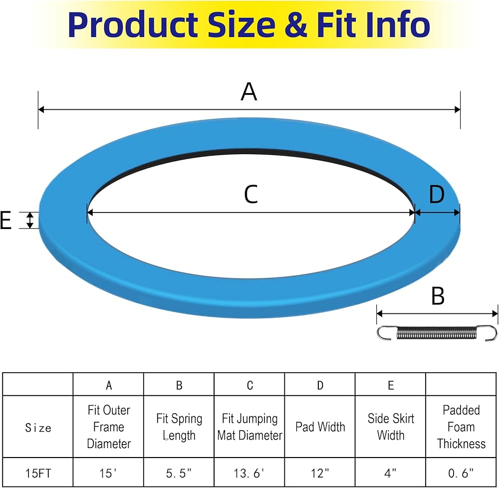 Weather Resistance and Long Life: With upgraded materials and workmanship, the wide and thickened 15 foot trampoline pad trampoline accessories will not easily deform even under the impact of external forces; Outdoor weather is always changing, our trampoline skirt 15 ft trampoline pads are not only waterproof and sunproof, but also adaptable to all kinds of weather; Always protect your trampoline from rain or bad weather.