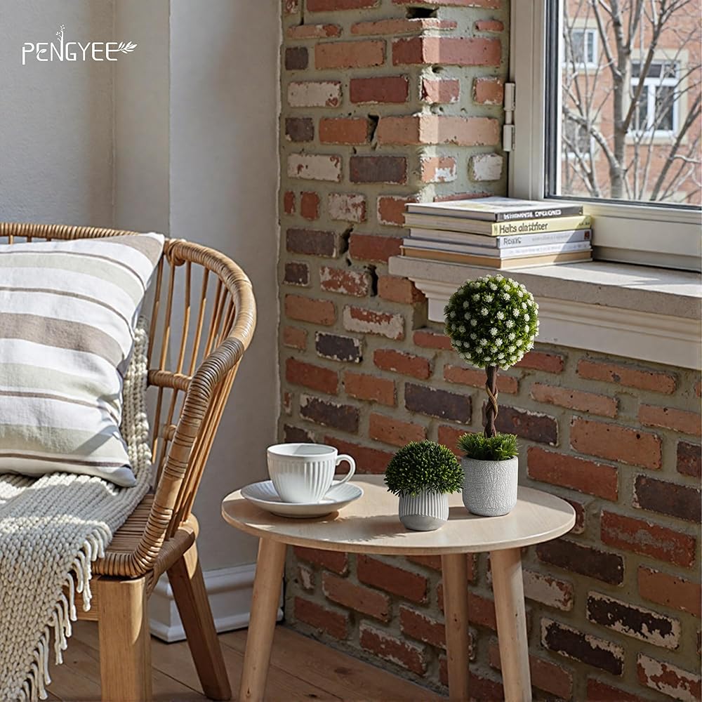 Unique Design : The PENGYEE 3pcs fake plants that are in three assorted concrete pot. The concrete ceramic pots with both traditional art characteristics and modern aesthetic charms, simple but fresh, more elegant in appearance and better in quality. This artificial boxwood plants outdoor arranged together or separately, will add a natural, earthy touch to any space.