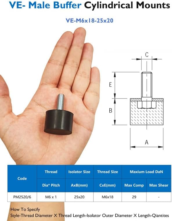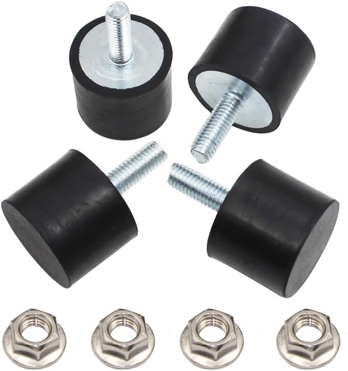 Cylindrical rubber mounts can be used for sound absorbent and isolating vibrations from stationary machinery such as fans, pumps, electric motors, transformers and compressors.