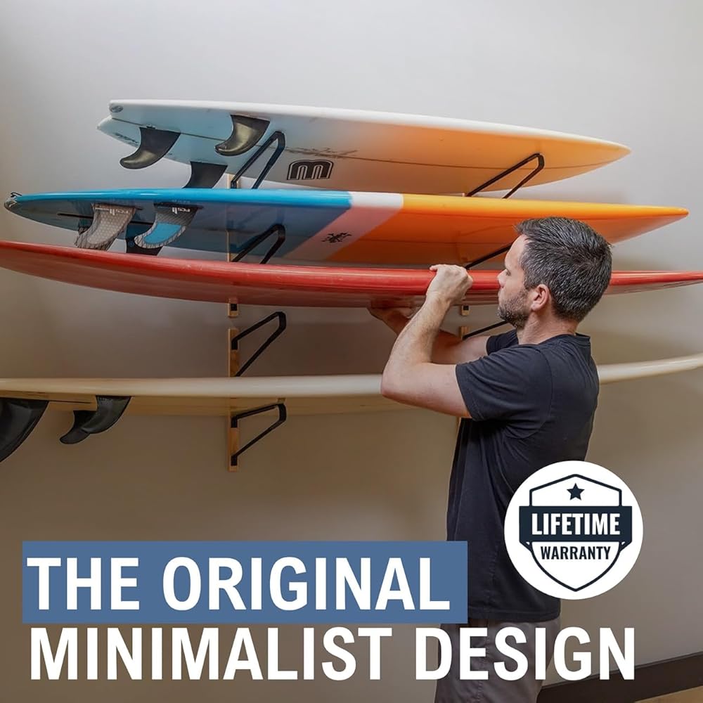 HEAVY DUTY: Supports up to 50 lbs per level. Purchase multiple surfboard racks to expand capacity by mounting each set of racks, spaced equally apart for a uniform look.