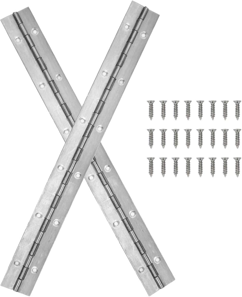 2Pack Stainless Steel Piano Hinge, Heavy Duty 12” Continuous Piano Hinges for Woodworking Projects, Sliver long Continuous Hinges Piano Cabinets Hinges for Box, Shelf, Bed Frame, Door and Boat Package: 2Pcs Stainless Steel Piano Hinges Color: Sliver Materials: Stainless Steel Length: 12Inch Leaf Thickness: 0.05" Open Width:1.2" Wide Applications: Wood Working Projects: Door Hinges, Toy Box, Hidden Jewelry Box, Seat and Seat Back Hinges Shed Door, Bed Frame, Coffee Table with a Storage Compartment, Playhouse Door, Storage Box, Parcel Delivery Box, Fold out Shelf Inspection plate hinges/fasteners Control surface hinges