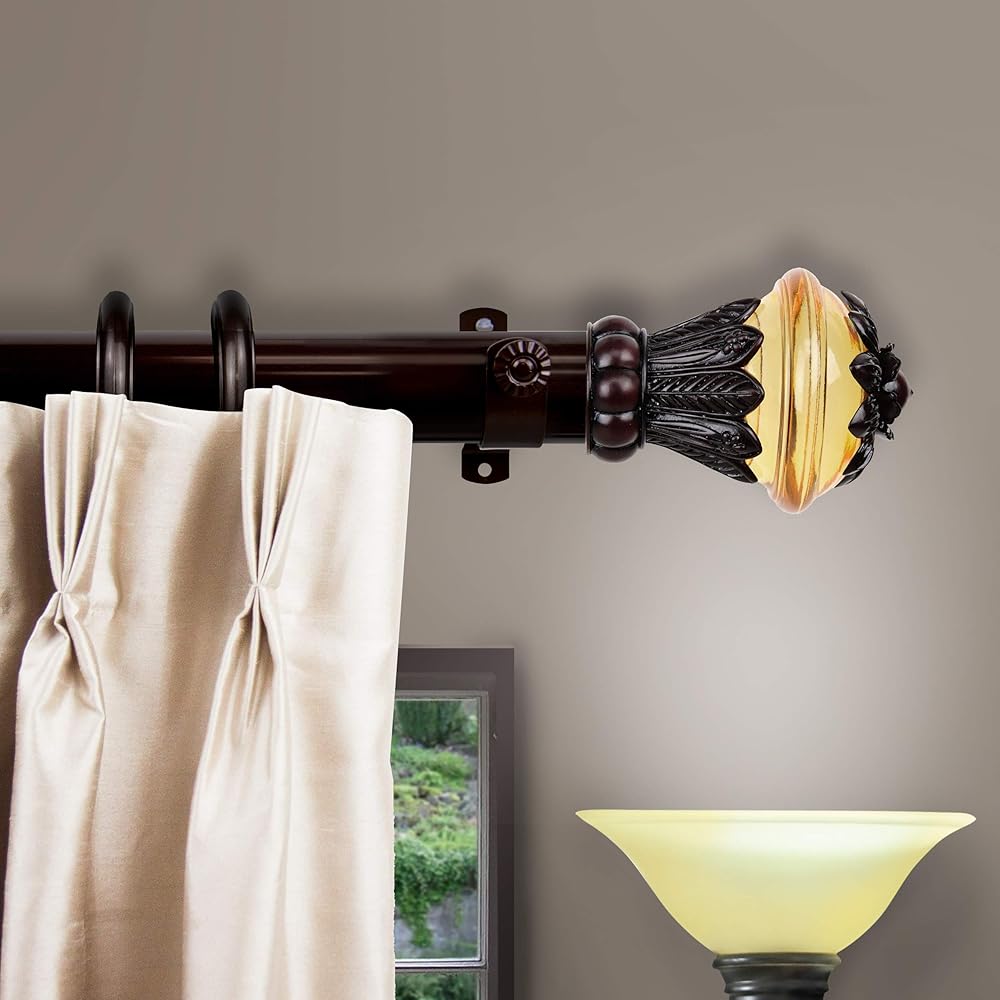 This Lacey curtain rod includes one 28-48 inch adjustable rod, two finials, two brackets and mounting hardware