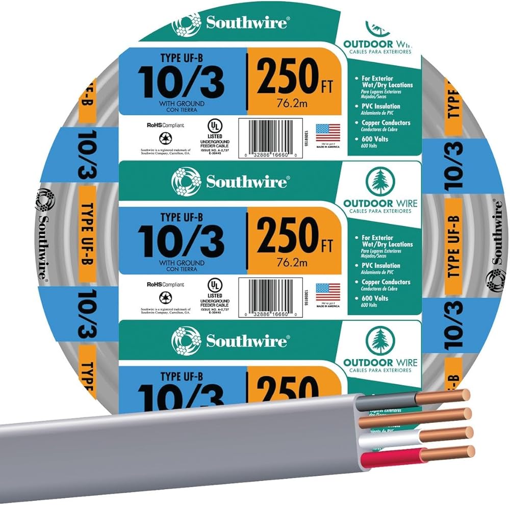 Compatible with Non-Metallic Conduit applications, the Southwire 10 degree cable is generally for outside use from a distribution point. This uf-b cable is suitable for underground and direct Burial installations. Ul listed.
