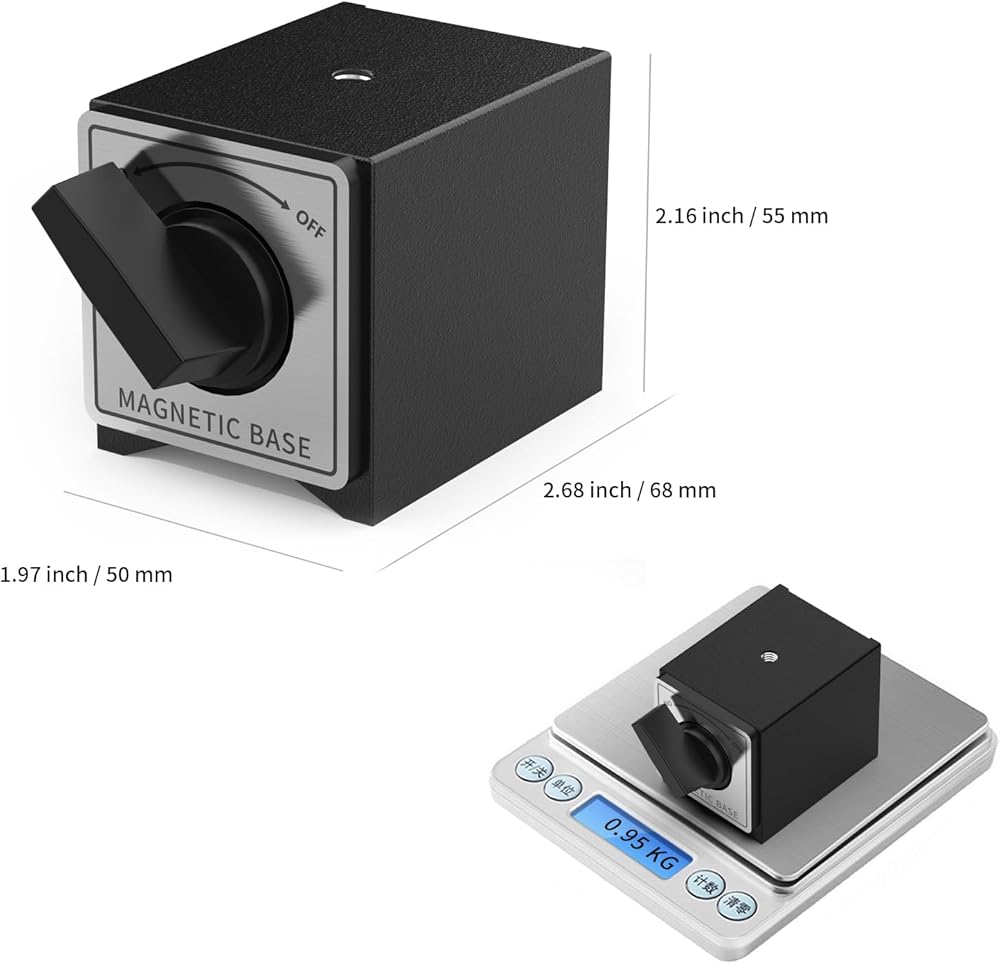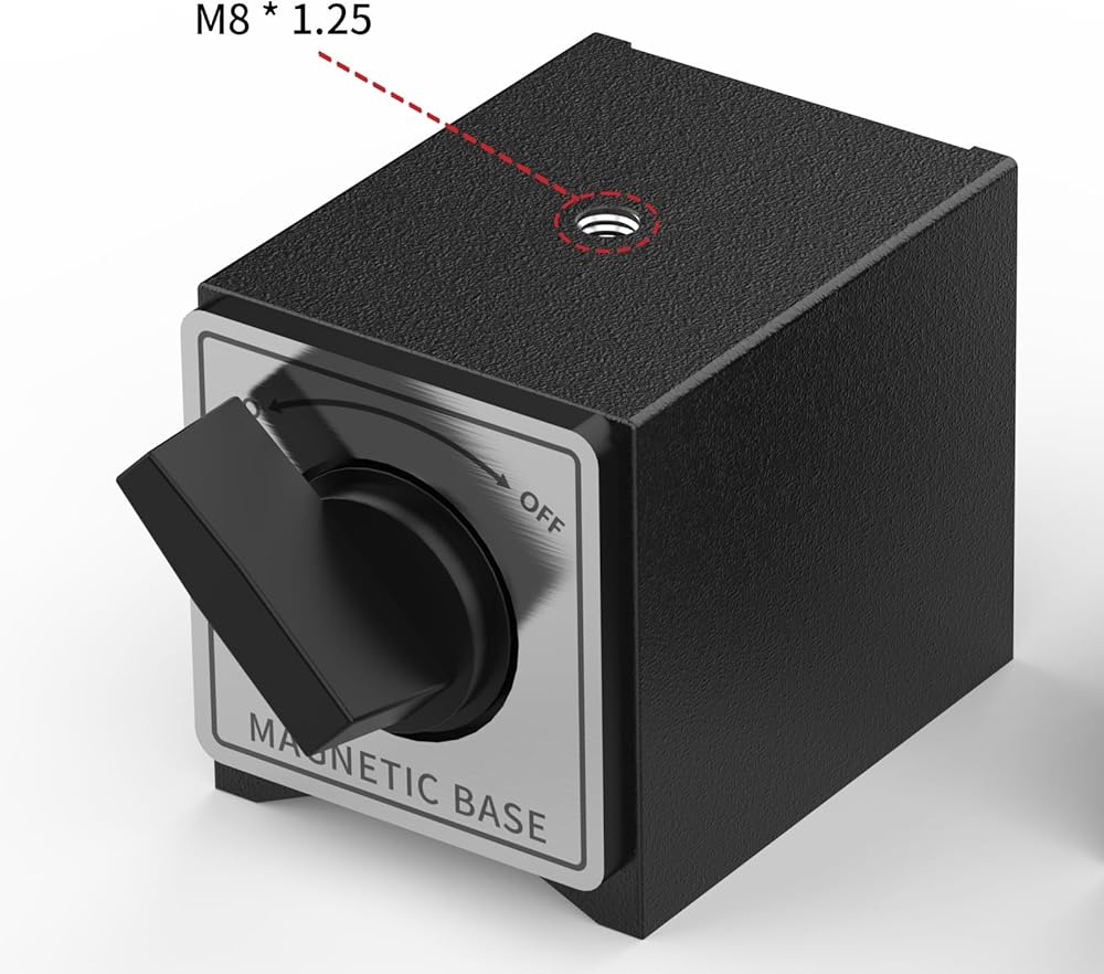 Magnetic Base has an On/Off switch which easily and quickly engages / releases magnet