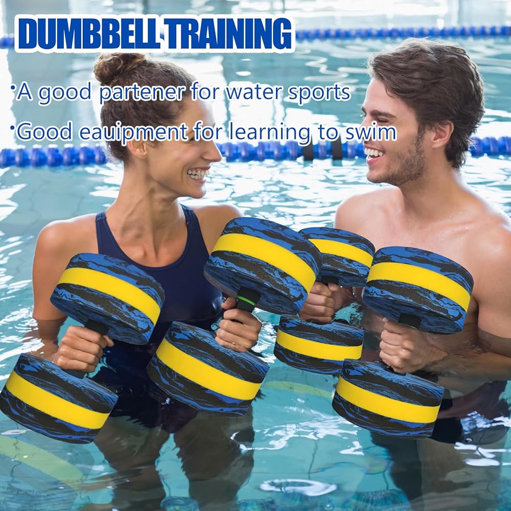 【Widely Application】: From swimming classes, water physical therapy, pool sports, underwater fitness to water aerobics, the water aerobics weights accessories have limitless uses. Plus, the aqua dumbbells are perfect for water resistance exercises to build upper body strength and strengthen muscles.Also could be interesting toys for your kids.NOTE: These foam dumbbells are not to be used as a flotation device.
