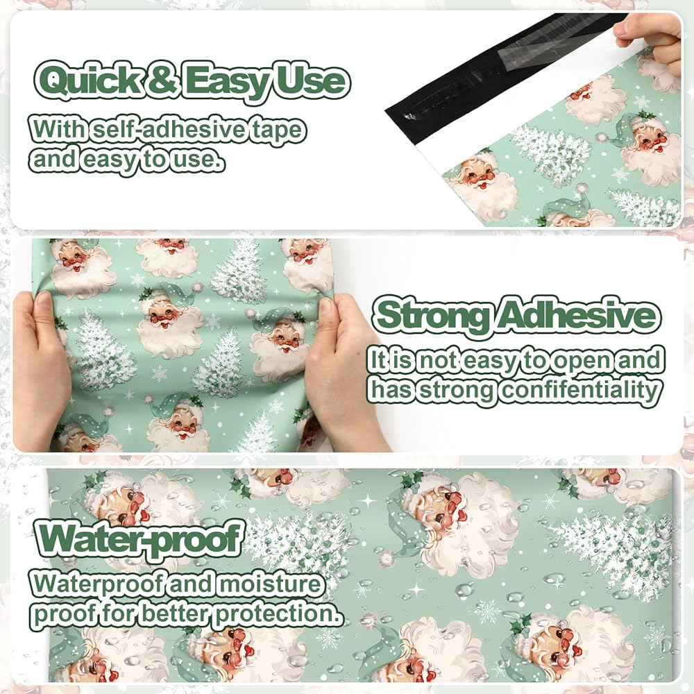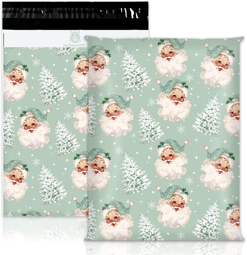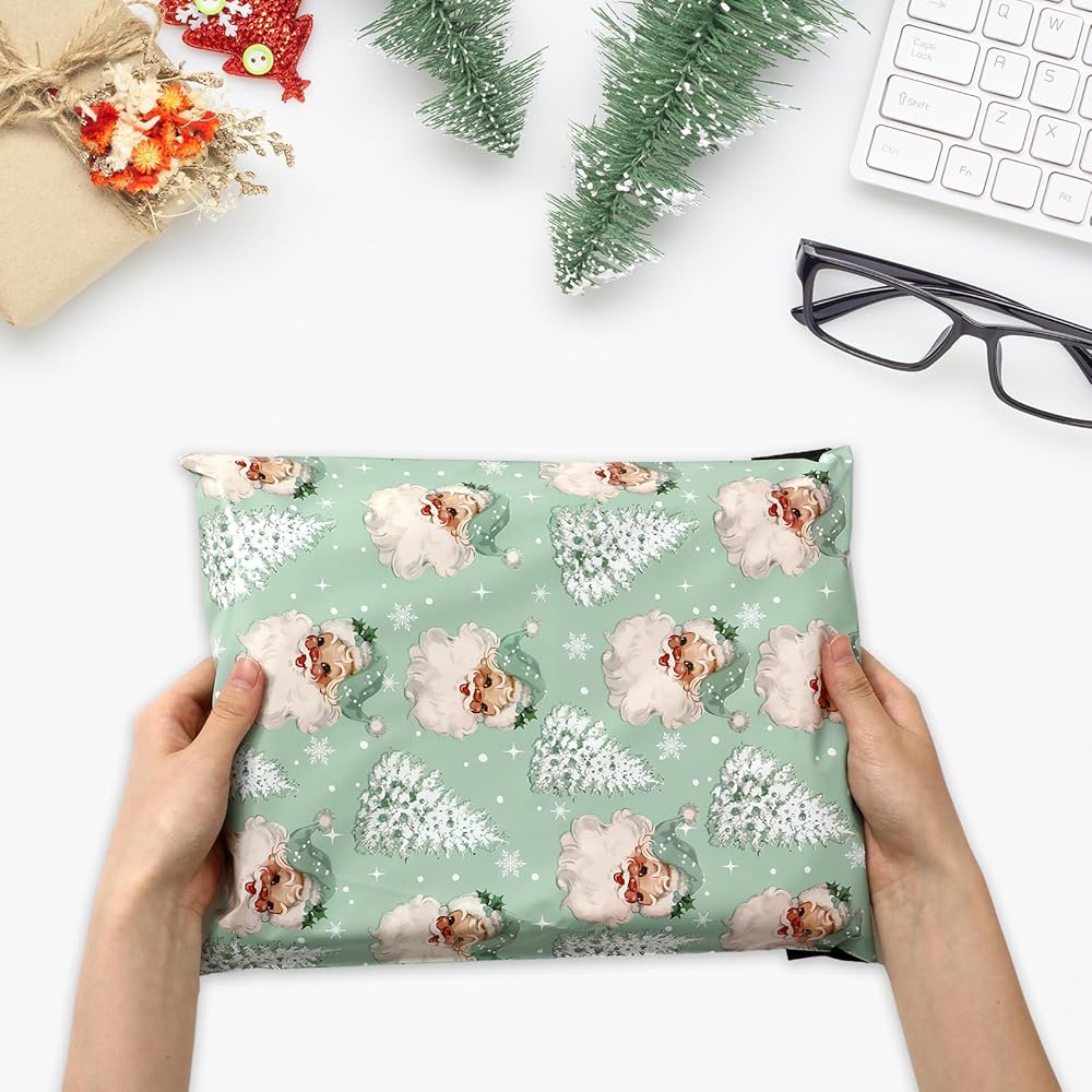 JarThenaAMCS 100Pcs Christmas Poly Mailers 10 x 13 Inch Green Santa Claus Xmas Tree Envelope Mailers Self-Sealing Plastic Packaging Mailing Bags for Small Business Clothing