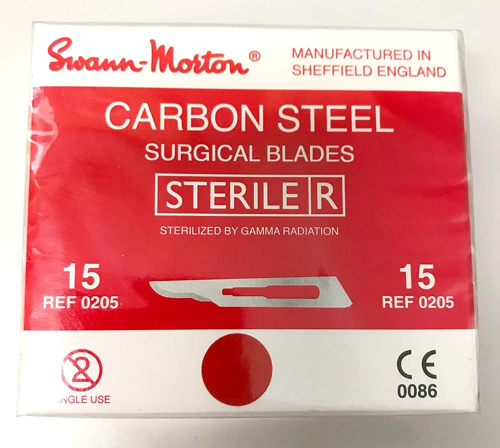 Swann Morton Blade, Sterile Carbon Steel Sz 15 100/bx