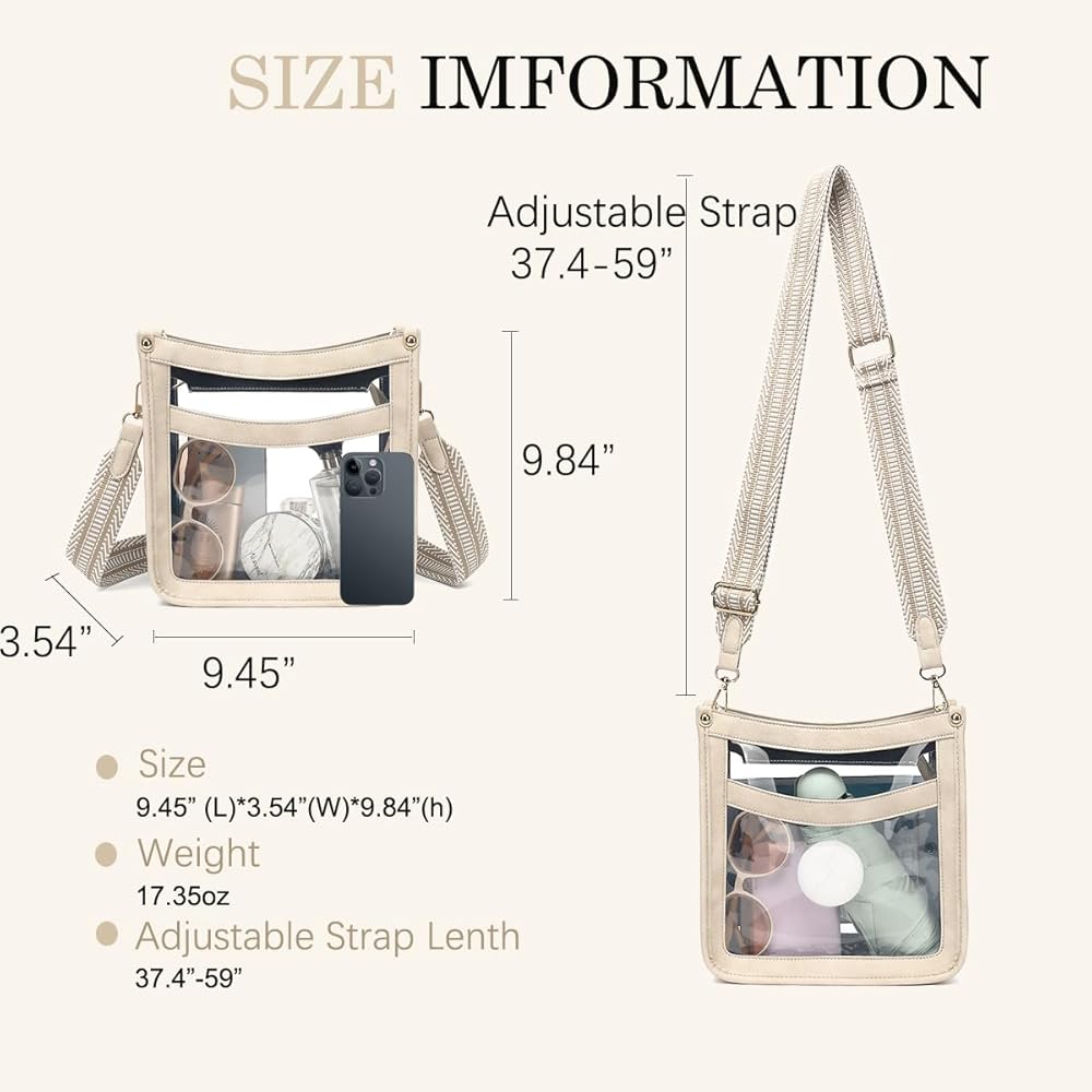 Clear Bag Stadium Approved : This clear crossbody bag is specifically designed to meet stadium regulations, with dimensions of 9.45" (L) x 3.54" (W) x 9.84" (H). This ensures hassle-free entry through security checks at stadiums and concerts where clear bags are required.