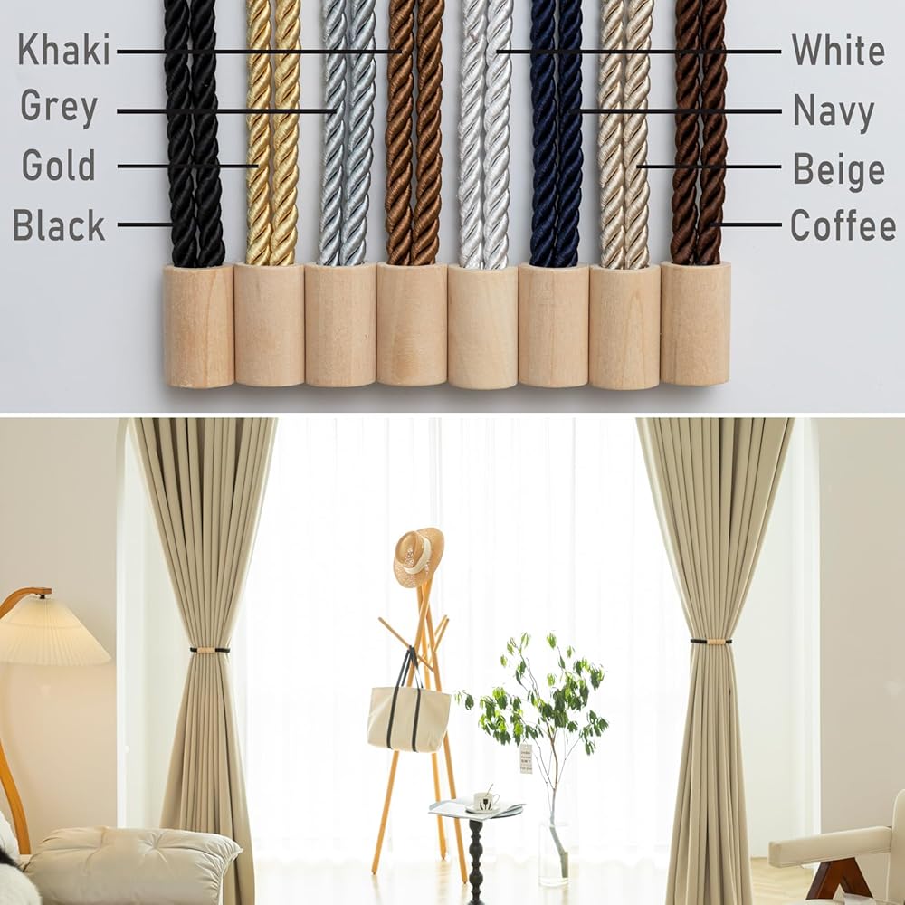 Multiple Use Choices: Our curtain tiebacks come in a variety of vibrant colors, including Beige, Black, Coffee, Gold, Grey, Khaki, Navy, and White, providing eight colors to choose from. Whether it's a modern minimalist style or a classic retro look, you can find a curtain tie to suit. They are perfect for both thin and thick curtains.