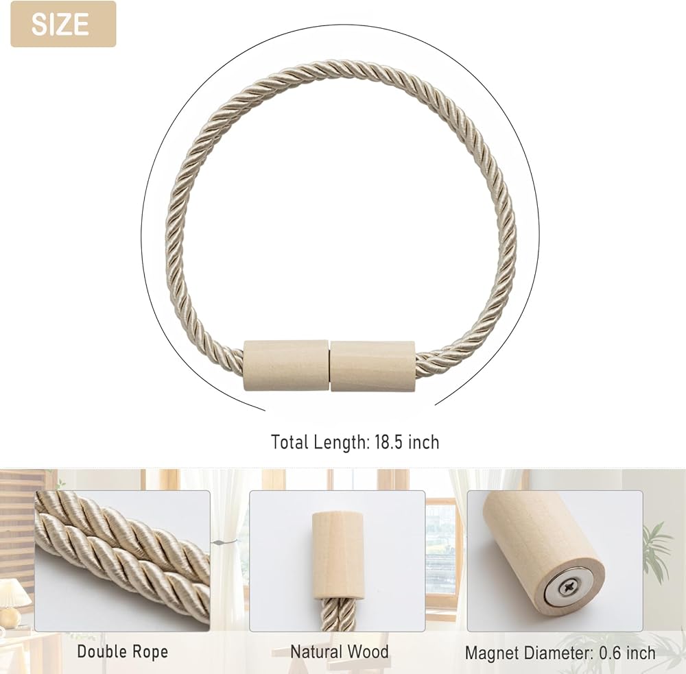 High-quality Materials: The curtain tieback is made of polyester double rope, providing durability and high tensile strength, ensuring long-lasting use without breakage. The natural wooden bead design is perfect for boho decor. The total length is 18.5", making it suitable for a wide range of curtain styles and sizes.