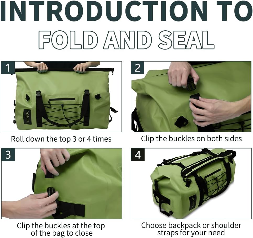 MULTIPLE APPLICATION-- LANEDO water proof bag is suitable for water sports like kayaking and paddle boarding but also for boating rafting, fishing, diving, motorcycle trips, hiking, and other outdoor activities