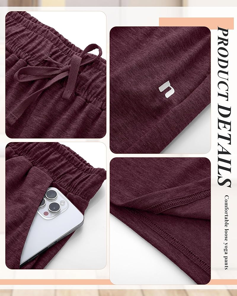 Two Side Pockets: wide leg loose lounge pants with 2 pockets are deep enough for conveniently stash your phone, key and cards, help you free your hand, allows you to enjoy your hands-free workout or in casual wear