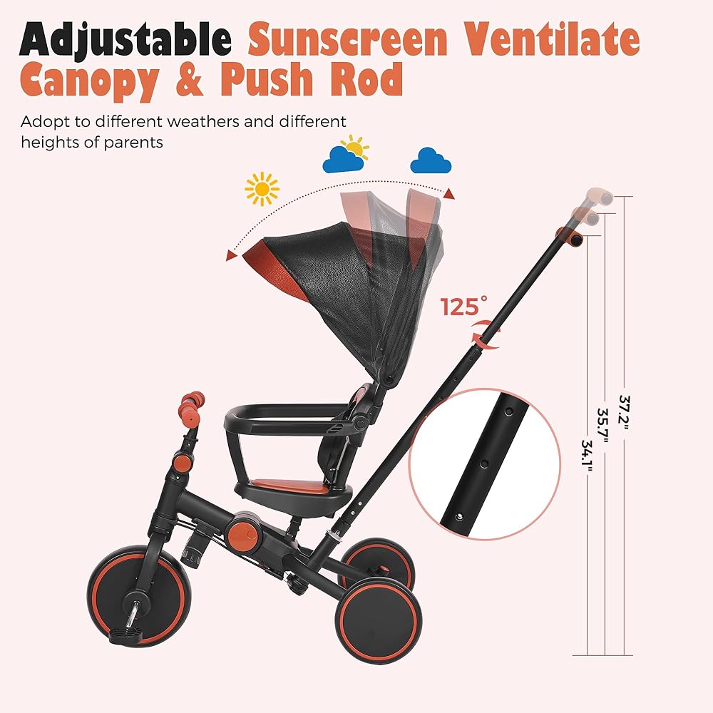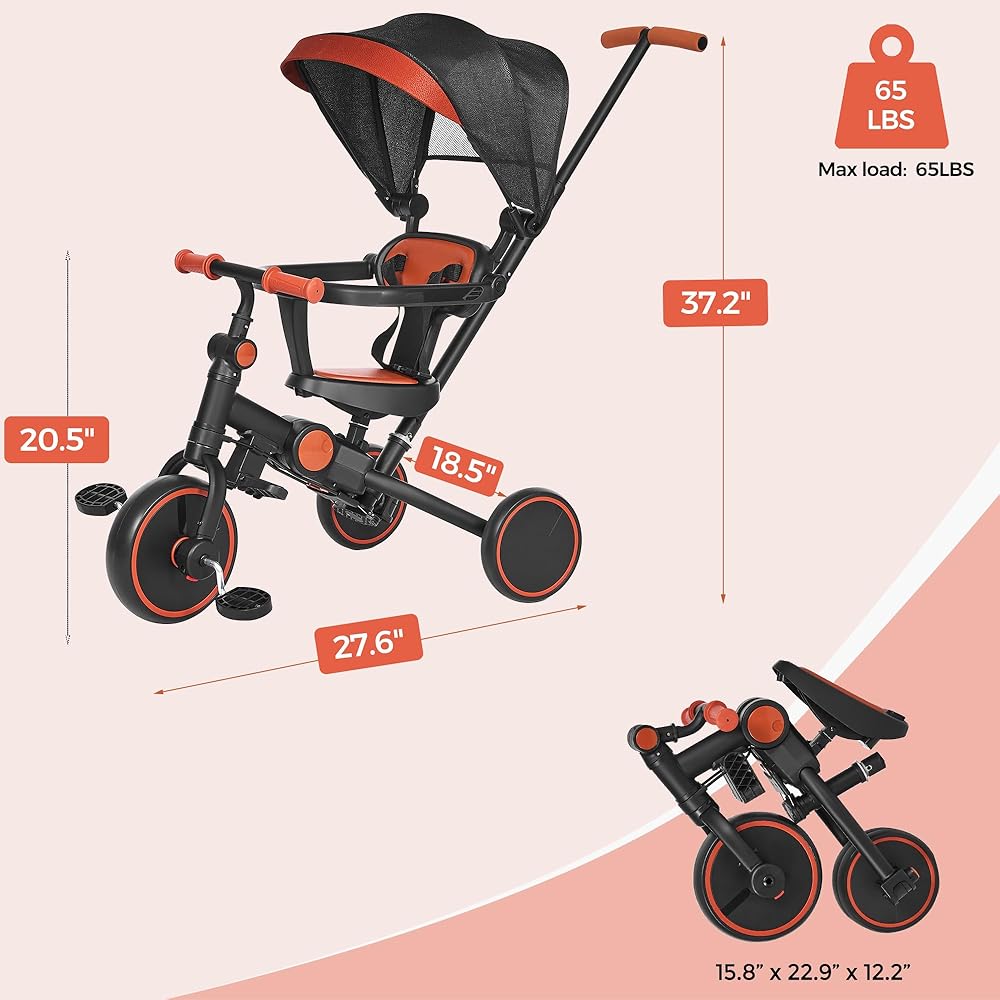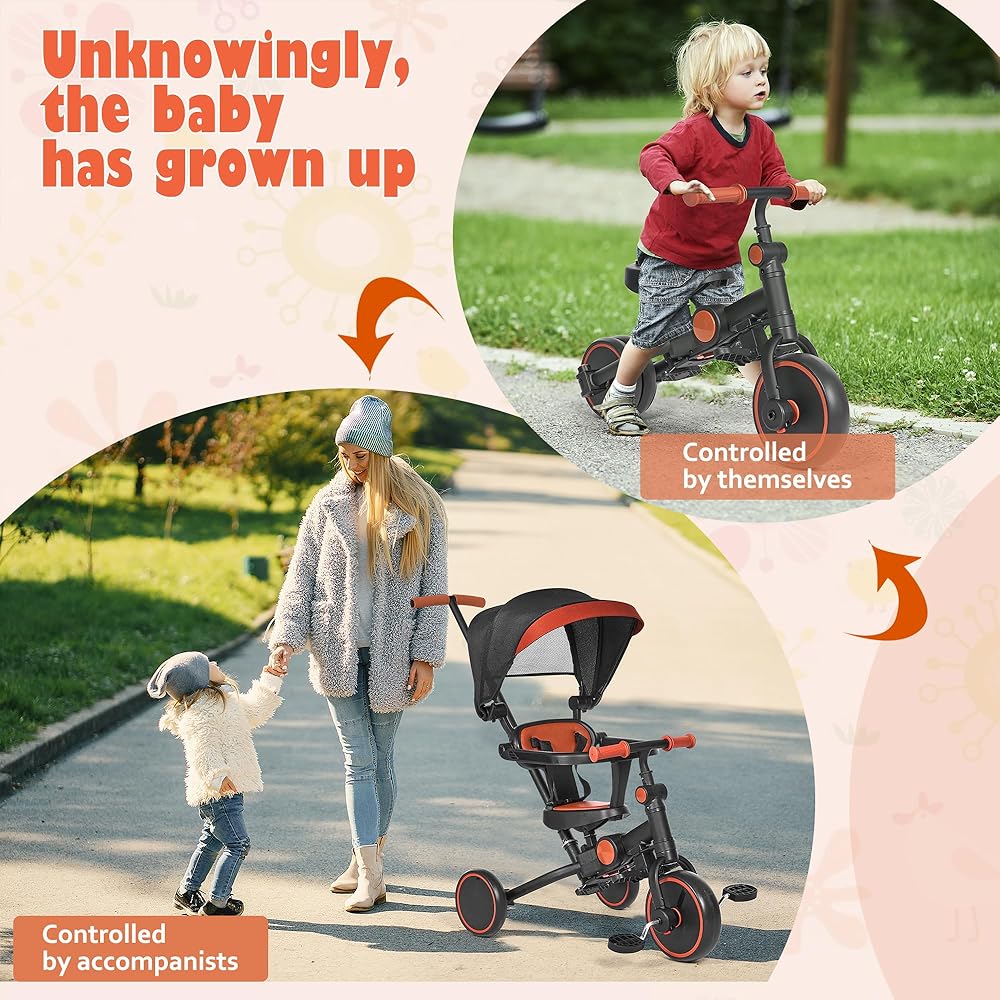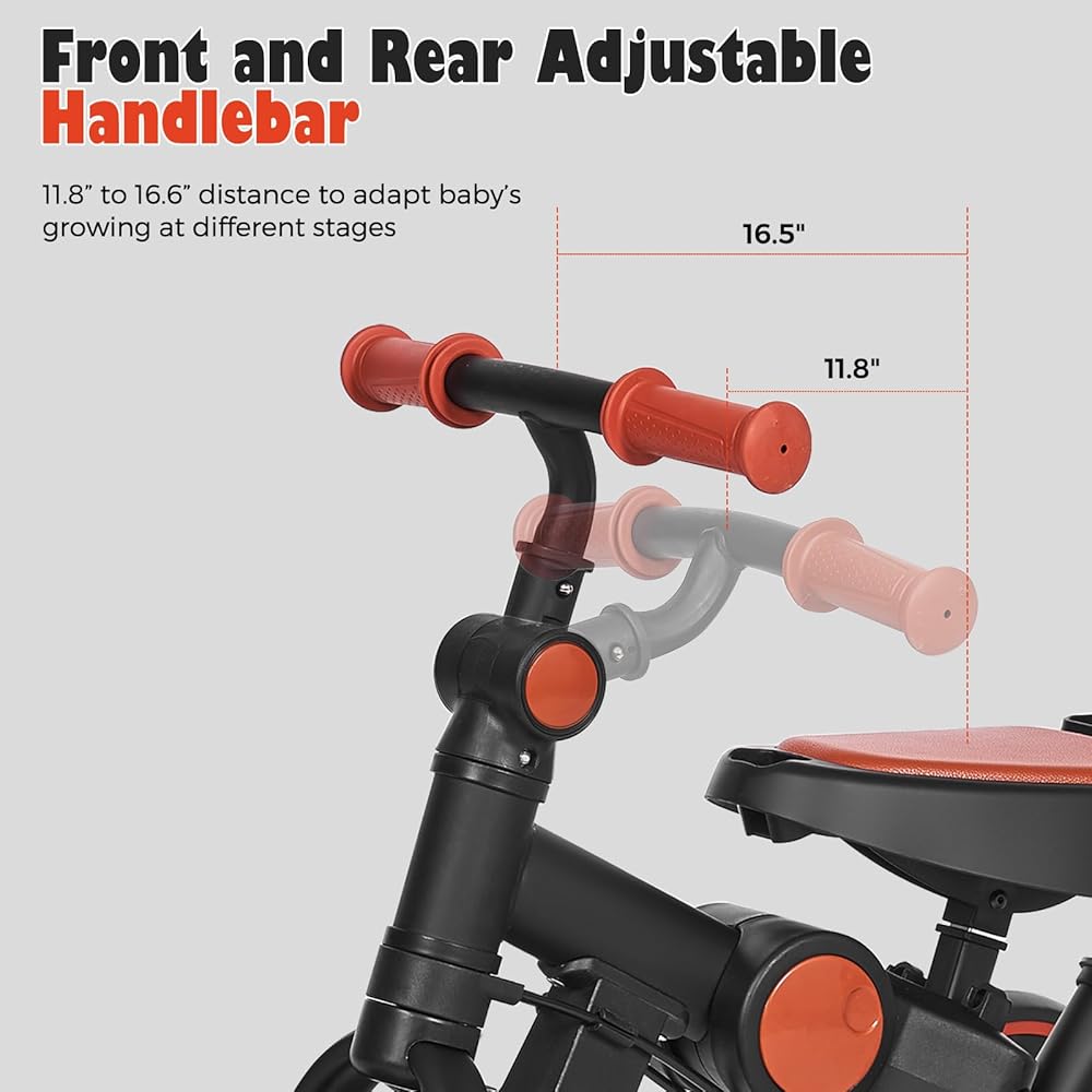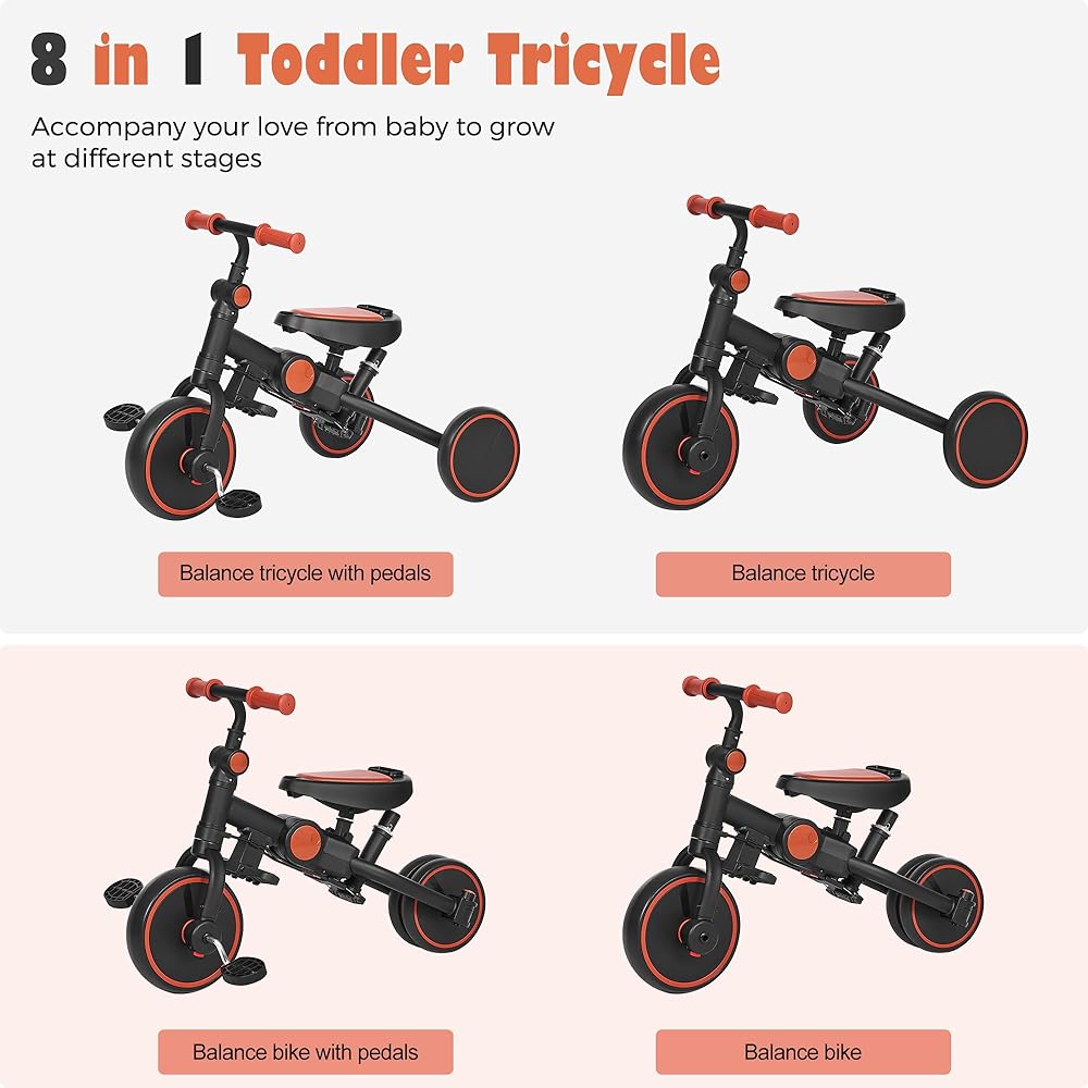 8 IN 1 TRICYCLE- Ideal for growing with your child from as young as 18 months up to 5 years old, can be used as a toddler tricycle, steering tricycle, learn to ride trike, stand alone trike, or classic trike to suit the needs of baby at different growth stages