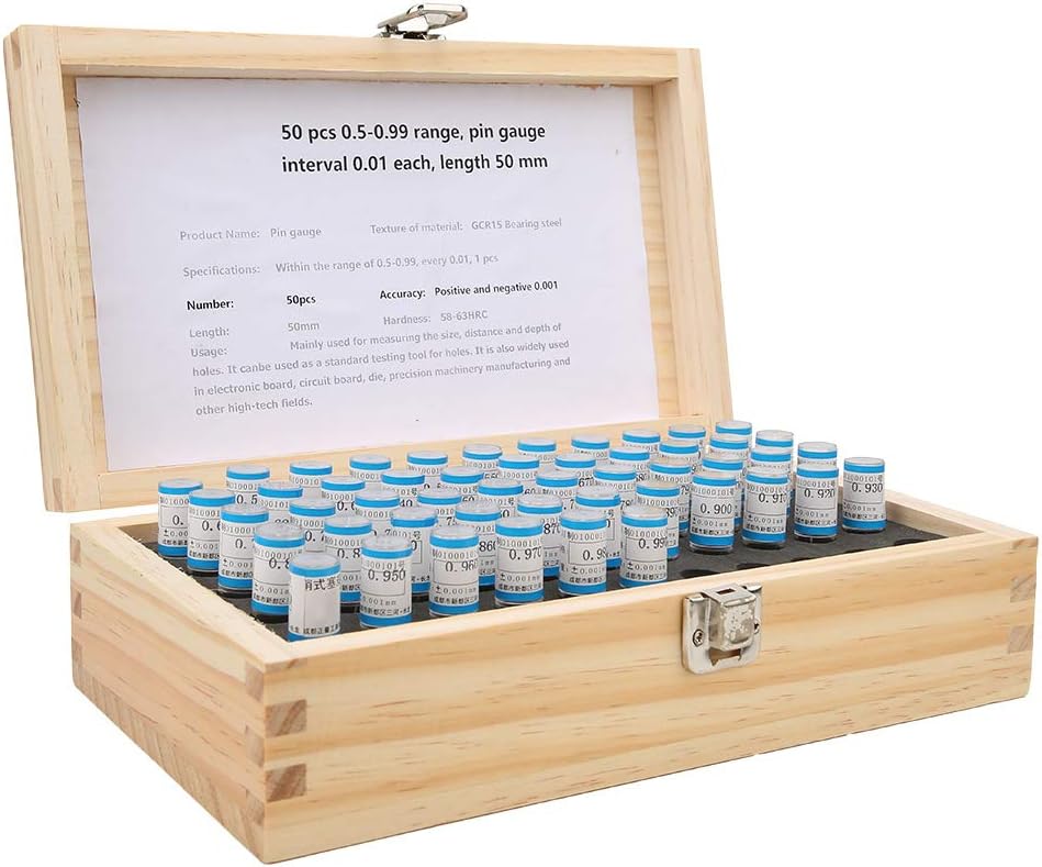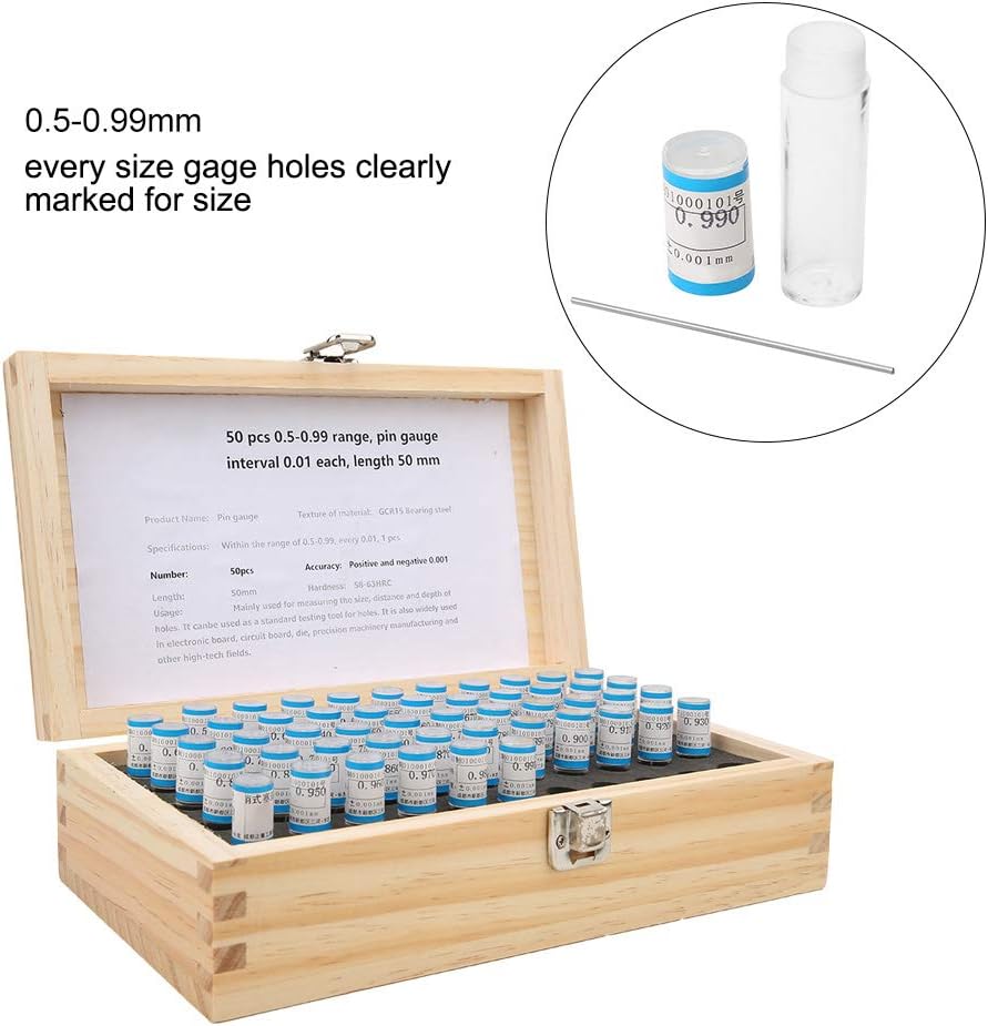 Pin Gage Set Plug Gage Set, Needle Gauge Kit, Metric Pin Gage, 50pcs 0.5-0.99mm Plug Pin Gage Set 0.001mm Tolerance Bearing Steel Precision Tool