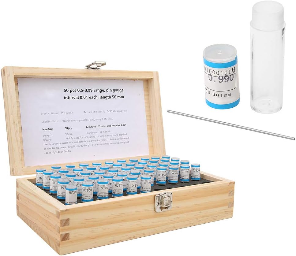 • 【Practical】Come with a wooden case to keep these pin gage neatly organized and easy to find. Each pin gage is labeled with corresponding size for easy identification