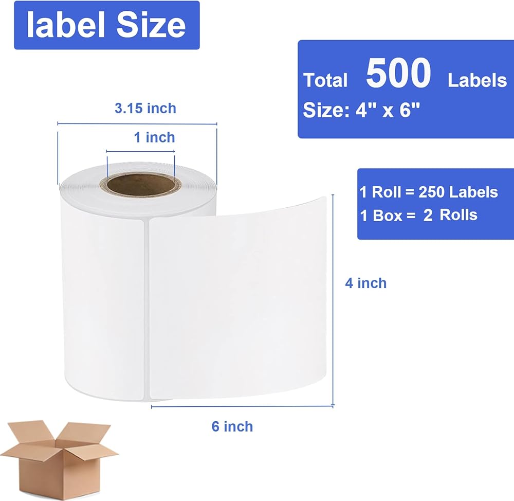 2 Rolls 4" X 6" Direct Thermal Shipping Labels, 500 Sheets of Commercial Grade Perforated Labels, Waterproof Self-Adhesive Paper, Suitable for Most Thermal Printers