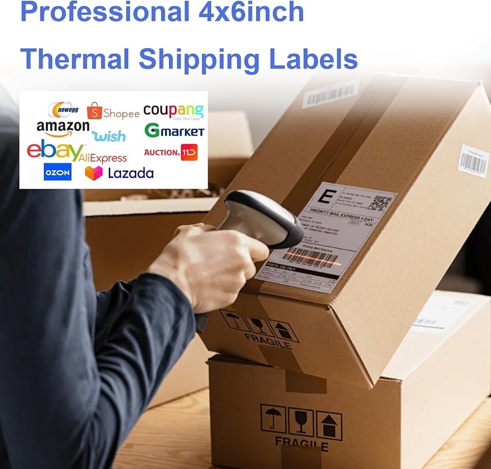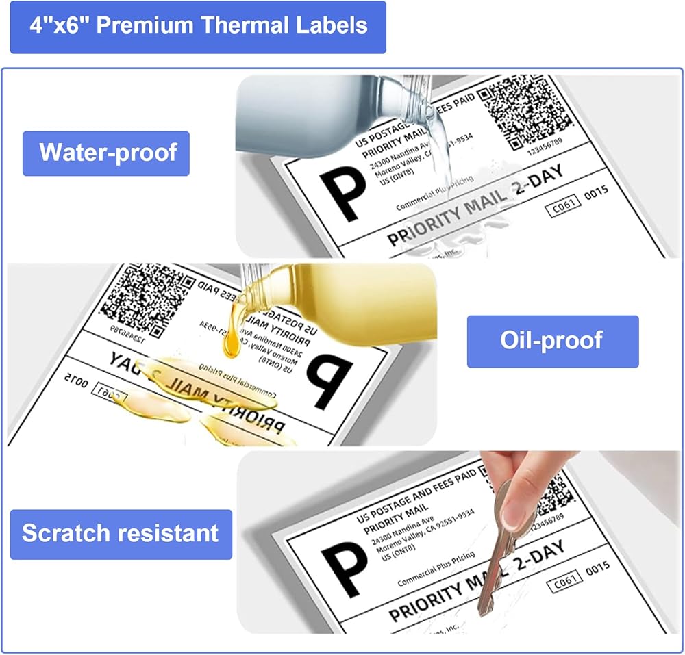 👍ULTRA-STRONG ADHESIVE:These thermal labels are backed with premium-grade and powerful adhesive, perfect for corrugated boxes and envelopes, great for commercial users and small business sellers to print barcodes, fba labels and etc.