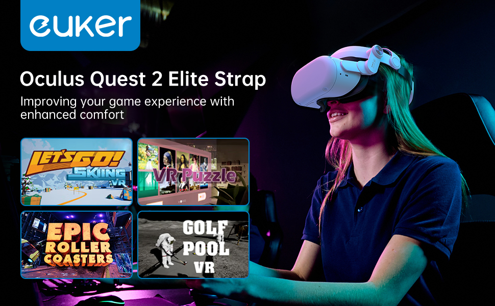 COMFORTABLE TO WEAR: Euker head strap for quest 2 weights just 0.45lb,30% lighter than other head straps to reduce your head and neck pressure.Upgraded ergonomic design,thickening sponge support and even pressure on the three sides designs can both make you wear the VR strap more comfortable.