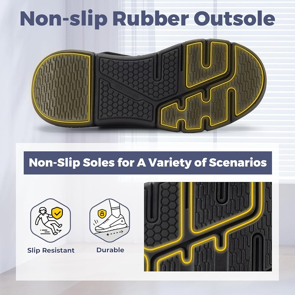 Breathable and Durable Materials - Breathable uppers are guaranteed to keep feet dry and cool, while slip-resistant and abrasion-resistant rubber outsoles provide reliable traction.