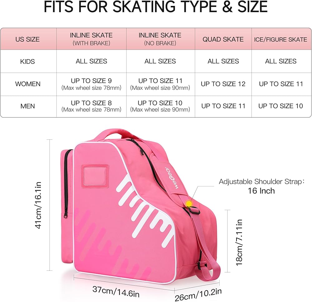 Top handle is convenient for you to take your roller skates bag go out or go home.