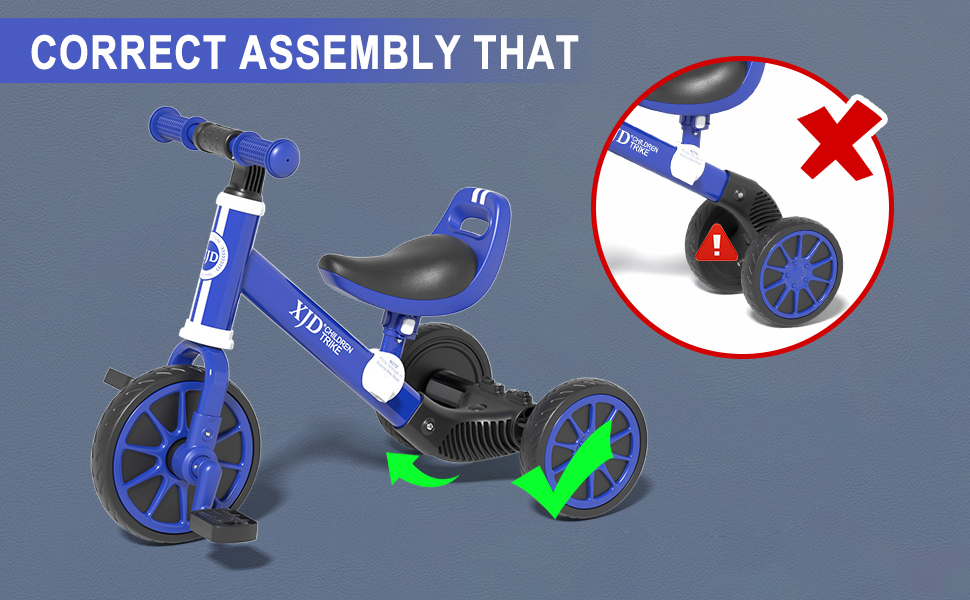 SAFE AND RELIABLE: XJD kids tricycle has been passed safety testings required, all the materials and design are safe for kids, please feel assured to choose. XJD aims to supply high-quality products, if you are not satisfied with our bike, please feel free to contact us