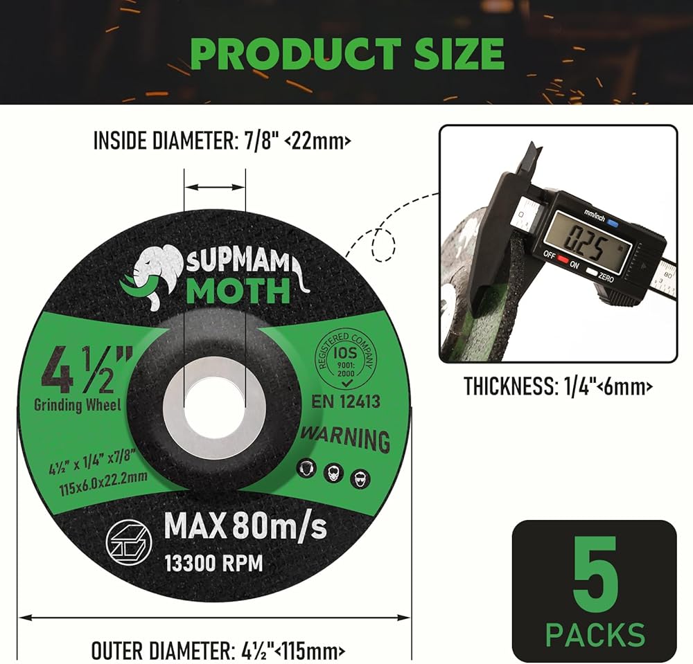 【Perfect Size】Our cut off wheels 4 1/2 inch are perfectly compatible with all 4-1/2 inch angle grinders with a 7/8 inch arbor, ensuring compatibility and ease of use. Operating at up to 13,300 RPM and 80 M/S