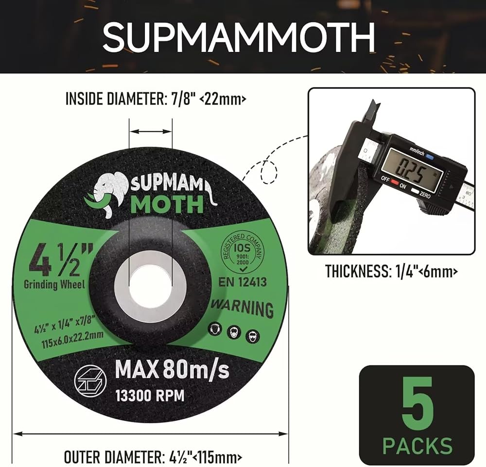 【High Performance & Efficiency】Our 4 1/2 grinding wheels feature a 0.045 inch ultra-thin design for fast, burr-free, and precise cutting with minimal material loss. This reduces burr formation and heat buildup, resulting in less rework and higher efficiency.